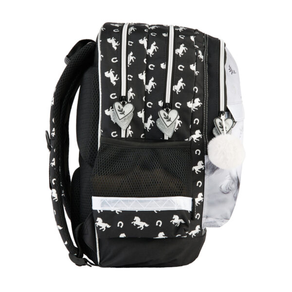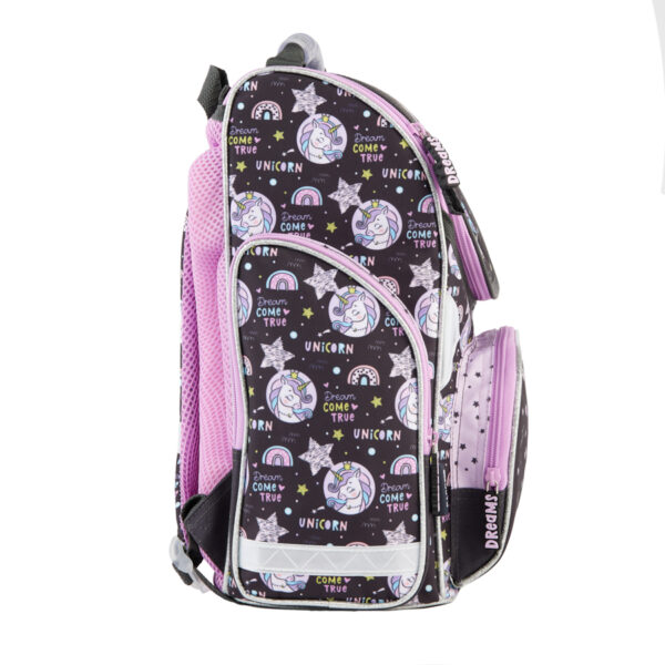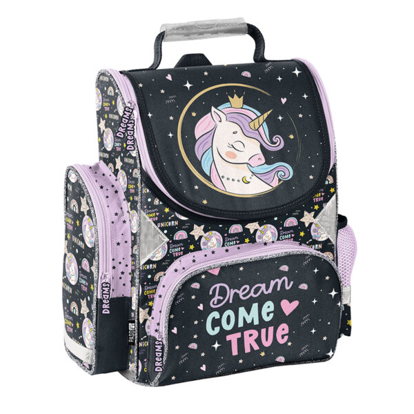 - Liczne kieszenie i przegródki ułatwiające organizację przyborów szkolnych