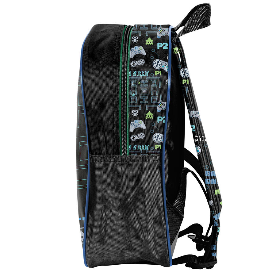 Mały plecak przedszkolny Game on! Pad z efektem trójwymiarowym. Plecak ten wyposażony jest w jedną główną komorę, którą można zamknąć na zamek błyskawiczny, oraz boczną kieszonkę z siatki, przeznaczoną do przechowywania małych akcesoriów. W skład plecaka wchodzą również miękkie, regulowane szelki, które umożliwiają idealne dostosowanie modelu do wysokości dziecka. Dodatkowo, plecak posiada wygodny uchwyt do przenoszenia w dłoni oraz możliwość zawieszenia. Ozdobne pullery przy zamku ułatwiają zamykanie komory i jednocześnie podnoszą ogólną atrakcyjność produktu. Jest to doskonały wybór dla młodszych dzieci, idealny na szkolne wycieczki, zajęcia pozalekcyjne, a także do przedszkola.