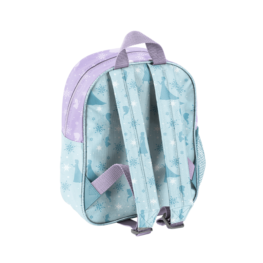 Mały plecak przedszkolny z motywem Frozen jest wyposażony w jedną główną komorę oraz boczną kieszonkę z siatki, która umożliwia przechowywanie małej butelki lub bidonu. Produkt ten posiada regulowane szelki, co pozwala na optymalne dopasowanie plecaka do wzrostu dziecka. Dodatkowo, plecak posiada wygodny uchwyt do przenoszenia oraz ozdobne pullery. Stanowi idealne rozwiązanie dla młodszych dzieci, które potrzebują plecaka na szkolne wycieczki, zajęcia pozalekcyjne lub do przedszkola.