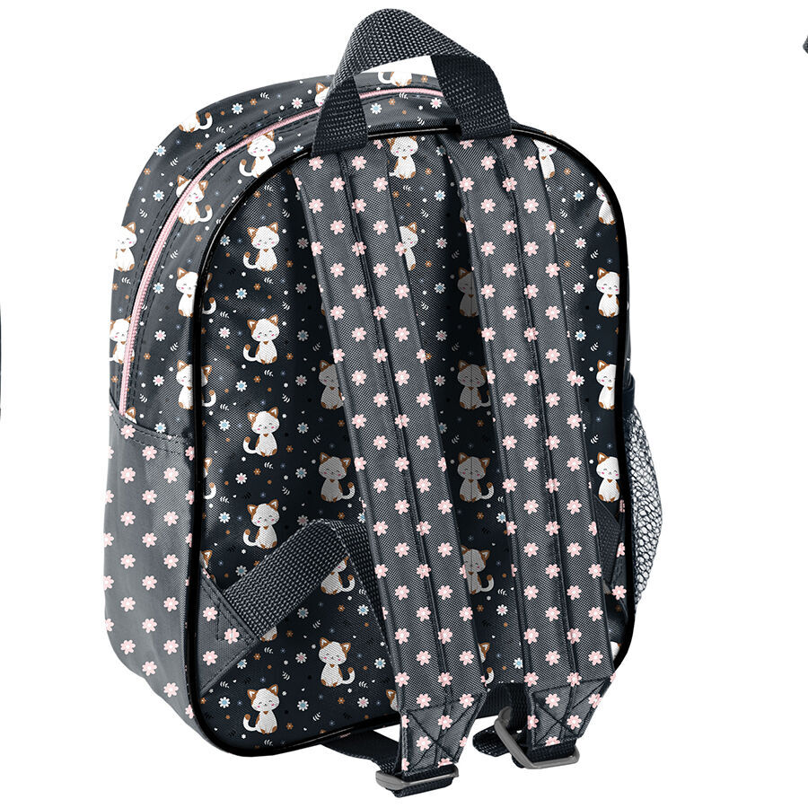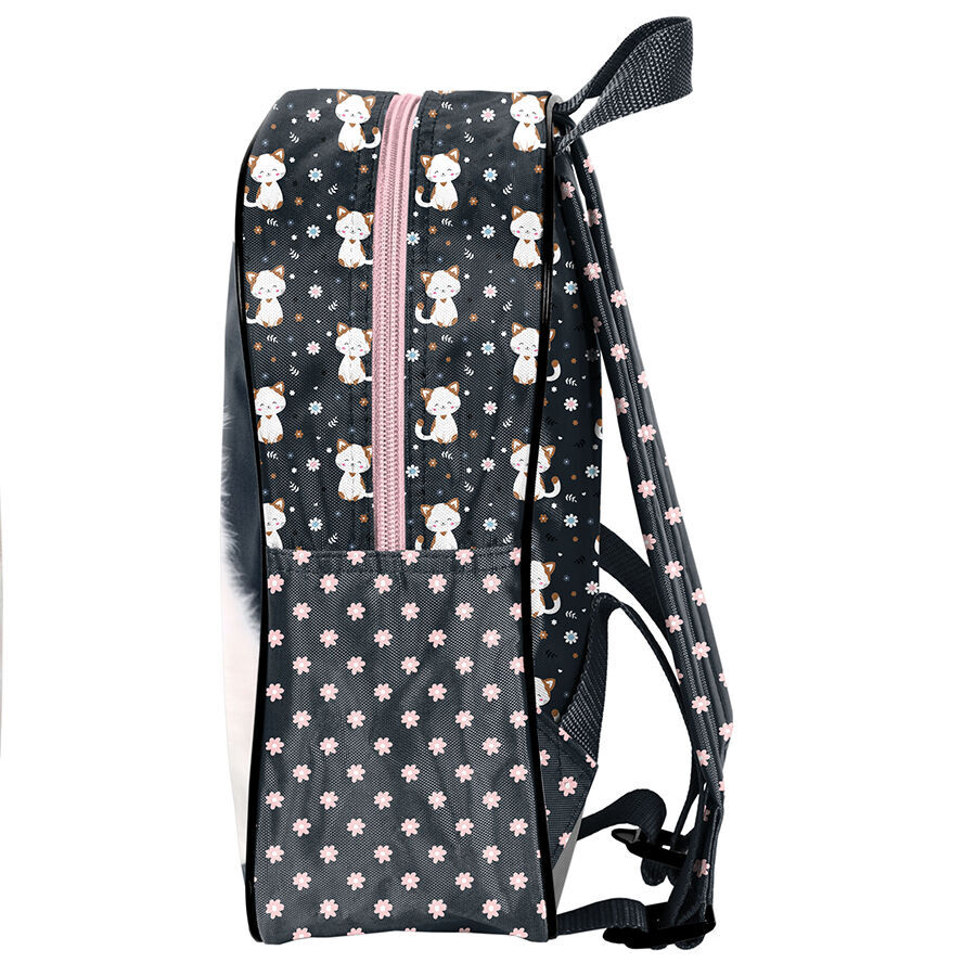 Mały plecak przedszkolny Little white cat z motywem zwierzątek jest wyposażony w jedną główną komorę oraz boczną kieszonkę z siatki, która umożliwia przechowywanie małej butelki, bidonu lub termosu. Produkt ten posiada regulowane szelki, co pozwala na optymalne dopasowanie plecaka do wzrostu dziecka. Dodatkowo, plecak posiada wygodny uchwyt do przenoszenia oraz ozdobne pullery. Stanowi idealne rozwiązanie dla młodszych dzieci, które potrzebują plecaka na szkolne wycieczki, zajęcia pozalekcyjne lub do przedszkola.
