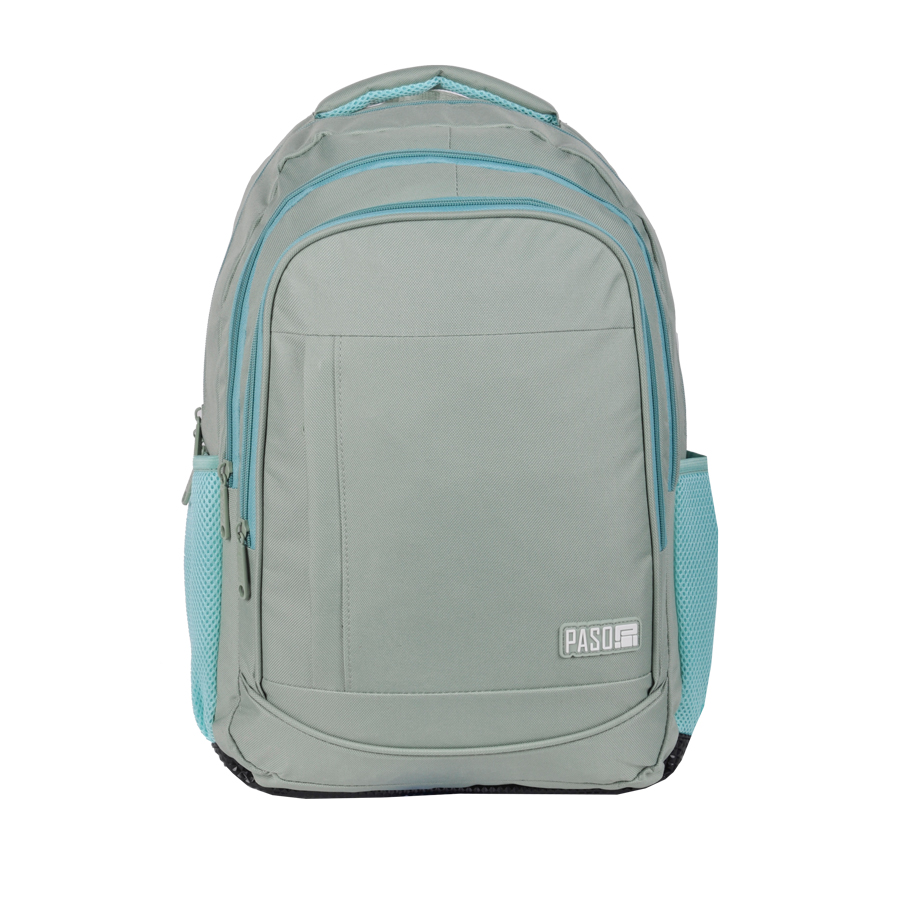 Plecak biznesowy w miętowym kolorze od marki Paso to doskonały wybór dla osób ceniących zarówno funkcjonalność, jak i elegancję. Jego konstrukcja składa się z trzech komór zamykanych na zamek, co zapewnia bezpieczeństwo przechowywanych przedmiotów. W głównej komorze znajduje się praktyczna przegroda, która pomaga utrzymać porządek. Na przedzie plecaka znajduje się pojemna kieszeń, również zamykana na zamek, która świetnie nadaje się do przechowywania dodatkowych akcesoriów.