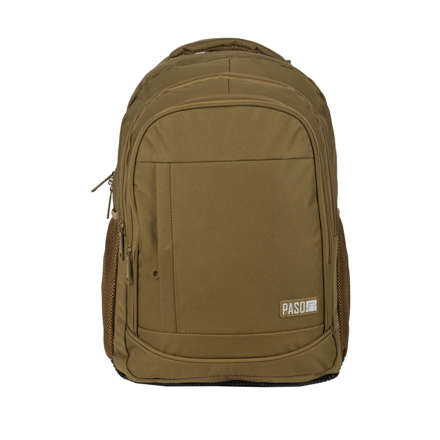 Plecak biznesowy w kolorze zielonym marki Paso charakteryzuje się staranną konstrukcją, obejmującą trzy komory zamykane na zamek błyskawiczny. W głównej komorze znajduje się funkcjonalna przegroda, która umożliwia utrzymanie porządku wśród przechowywanych przedmiotów. Na przedniej stronie plecaka umieszczono pojemną kieszeń, również zamykaną na zamek, co czyni ją doskonałym miejscem na dodatkowe akcesoria. Dwie boczne kieszenie z siatki stanowią praktyczne rozwiązanie do przechowywania bidonu, butelki czy termosu.
