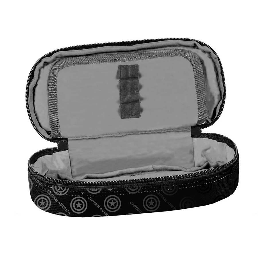 Piórnik Avengers BeUniq to wygodny, jednokomorowy piórnik, który bez trudu pomieści najważniejsze szkolne akcesoria. Wewnątrz piórnika znajduje się klapka, na której z jednej strony zamieszczone są uchwyty na ołówki, długopisy czy inne przybory piśmiennicze, z drugiej funkcjonalna kieszonka na zamek z siatki. Stanowi świetny dodatek do klasycznych piórników, które nie pomieszczą dodatkowych przyborów, takich jak temperówka, klej, cyrkiel, korektor czy markery.