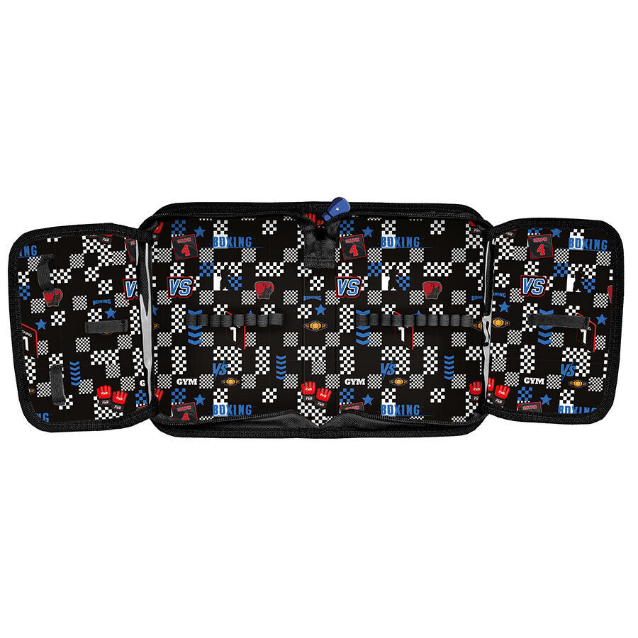 Piórnik Boxing club w prostym, eleganckim stylu. To uniwersalny, jednokomorowy model z dwiema klapkami, które pomieszczą wszystkie niezbędne przybory szkolne. Zamek błyskawiczny zapewnia wygodne otwieranie i zamykanie. Piórnik z łatwością pomieści najważniejsze akcesoria, a wewnętrzne uchwyty pozwalają na utrzymanie porządku wśród przyborów. Dzięki swoim optymalnym wymiarom zajmuje niewiele miejsca w plecaku, idealnie nadając się na co dzień do szkoły.