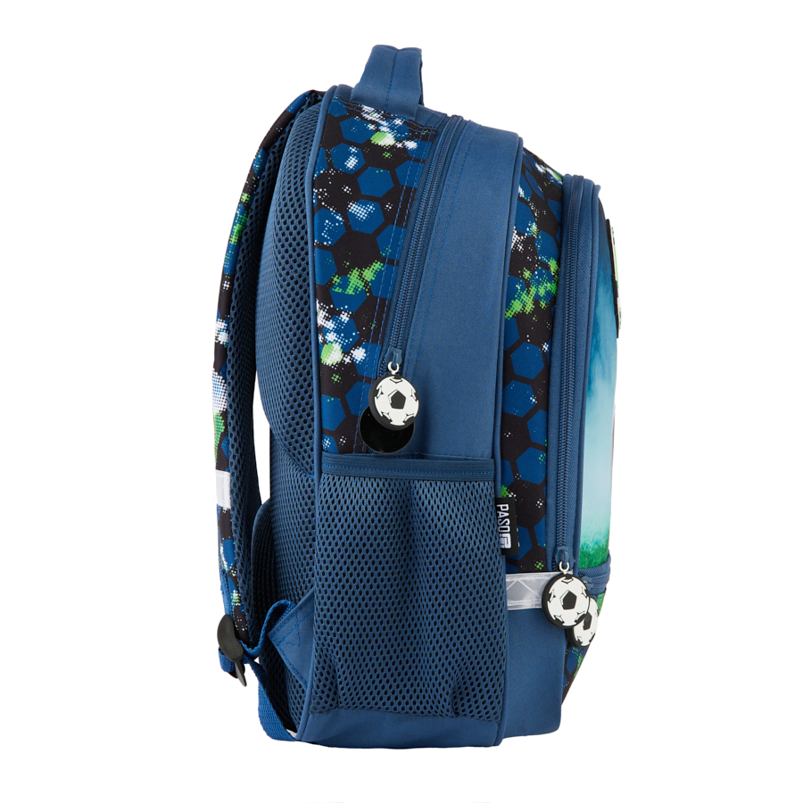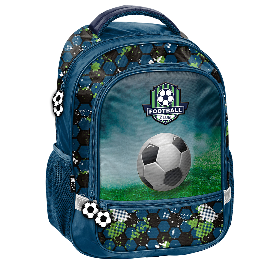Piórnik bez wyposażenia Football. Uniwersalny, jednokomorowy model z dwiema klapkami na przybory, zapinany na zamek błyskawiczny. Piórnik bez trudu pomieści najważniejsze szkolne akcesoria, a znajdujące się wewnątrz uchwyty pozwolą zachować idealny porządek wśród przyborów. Dzięki swoim idealnym wymiarom nie zajmuje dużo miejsca w plecaku szkolnym.