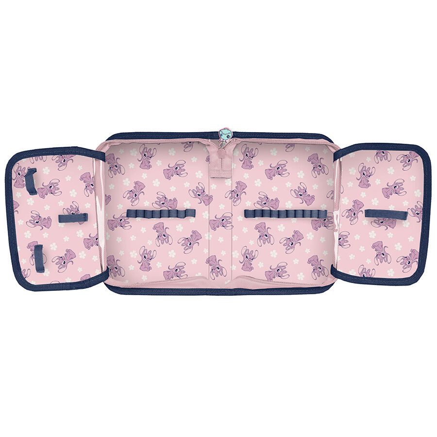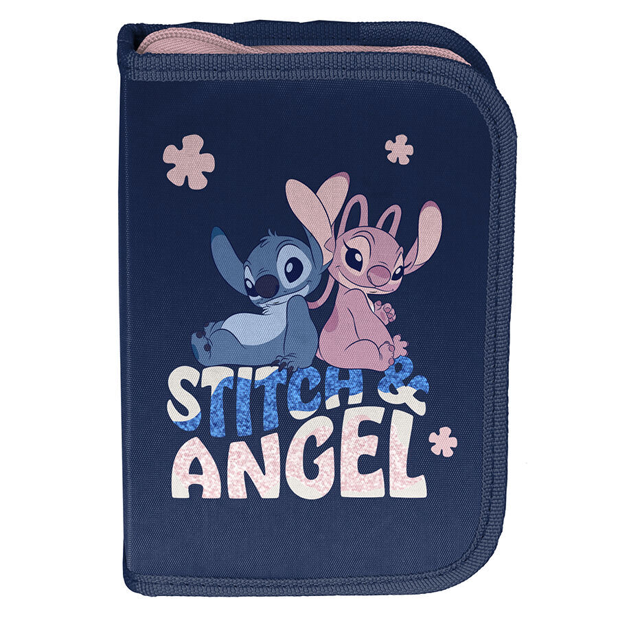 Piórnik Stitch i Angel bez wyposażenia to uniwersalny, jednokomorowy model, wyposażony w dwie klapki na przybory, zapinany na niezawodny zamek błyskawiczny. Jego przestronna konstrukcja pomieści wszystkie niezbędne akcesoria szkolne, a wewnętrzne uchwyty pomogą utrzymać porządek wśród przyborów. Dzięki optymalnym wymiarom piórnik nie zajmuje dużo miejsca w plecaku szkolnym.