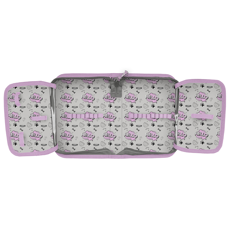 Piórnik Hello Puppie w wersji bez akcesoriów to uniwersalny, jednokomorowy model, posiadający dwie klapki na przybory, zamykany na trwały zamek błyskawiczny. Jego obszerna budowa pomieści wszystkie potrzebne akcesoria edukacyjne, a wewnętrzne uchwyty ułatwią organizację przyborów. Dzięki idealnym rozmiarom piórnik nie zajmuje zbyt wiele miejsca w tornistrze szkolnym.