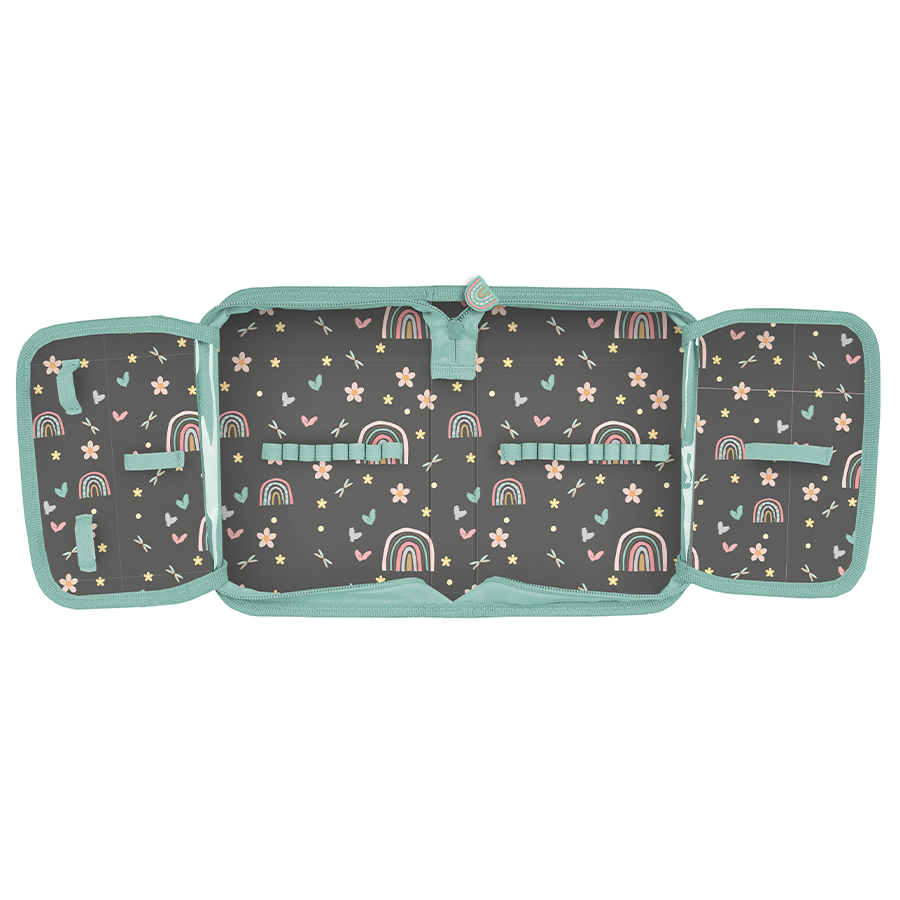 Piórnik Lovely Cat w prostym, eleganckim stylu. To uniwersalny, jednokomorowy model z dwiema klapkami, które pomieszczą wszystkie niezbędne przybory szkolne. Zamek błyskawiczny zapewnia wygodne otwieranie i zamykanie. Piórnik z łatwością pomieści najważniejsze akcesoria, a wewnętrzne uchwyty pozwalają na utrzymanie porządku wśród przyborów. Dzięki swoim optymalnym wymiarom zajmuje niewiele miejsca w plecaku, idealnie nadając się na co dzień do szkoły.