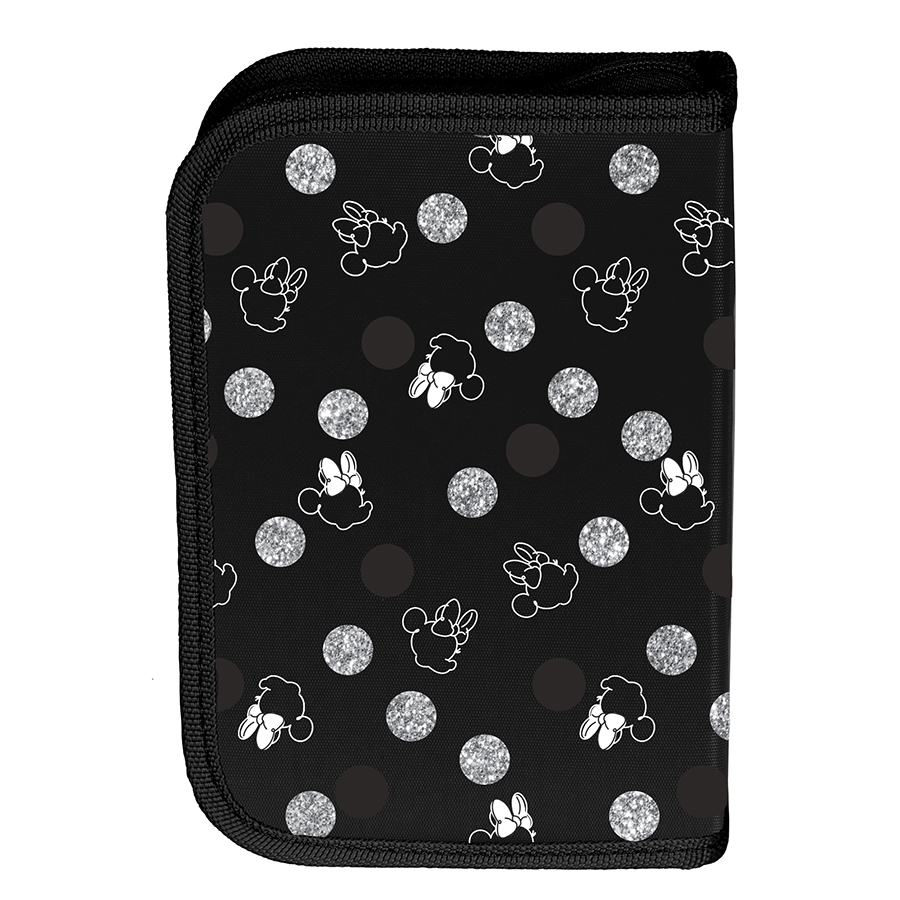 Piórnik bez wyposażenia Minnie. Uniwersalny, jednokomorowy model z dwiema klapkami na przybory, zapinany na zamek błyskawiczny. Piórnik bez trudu pomieści najważniejsze szkolne akcesoria, a znajdujące się wewnątrz uchwyty pozwolą zachować idealny porządek wśród przyborów.