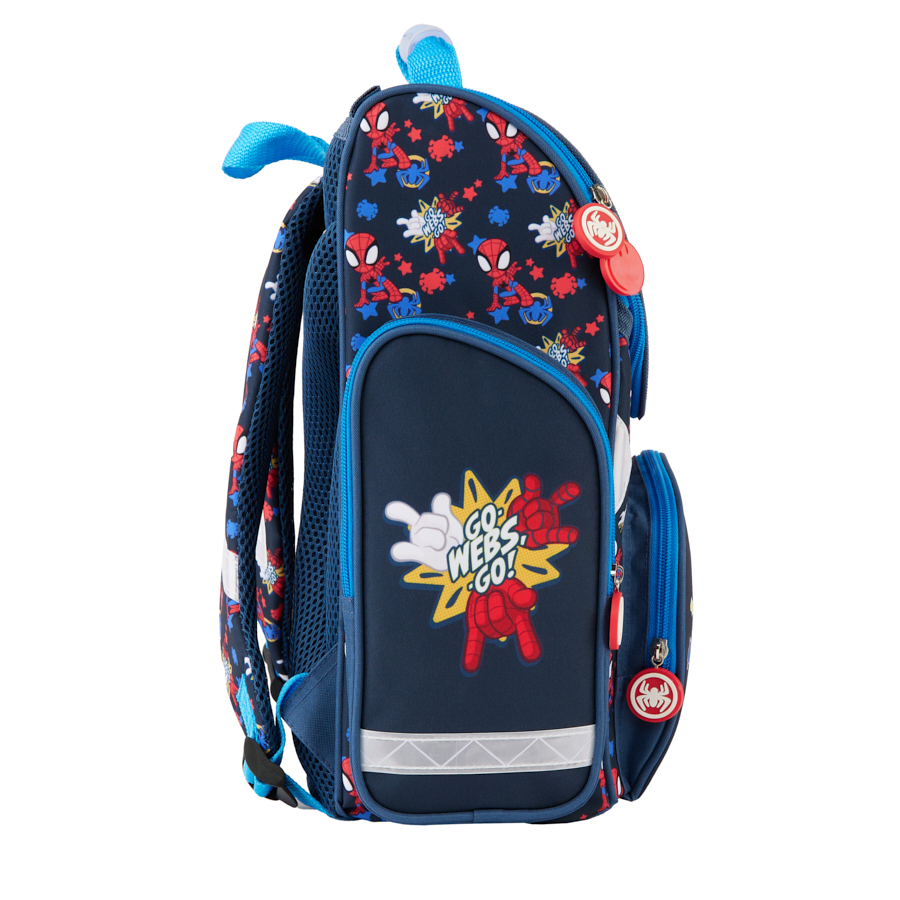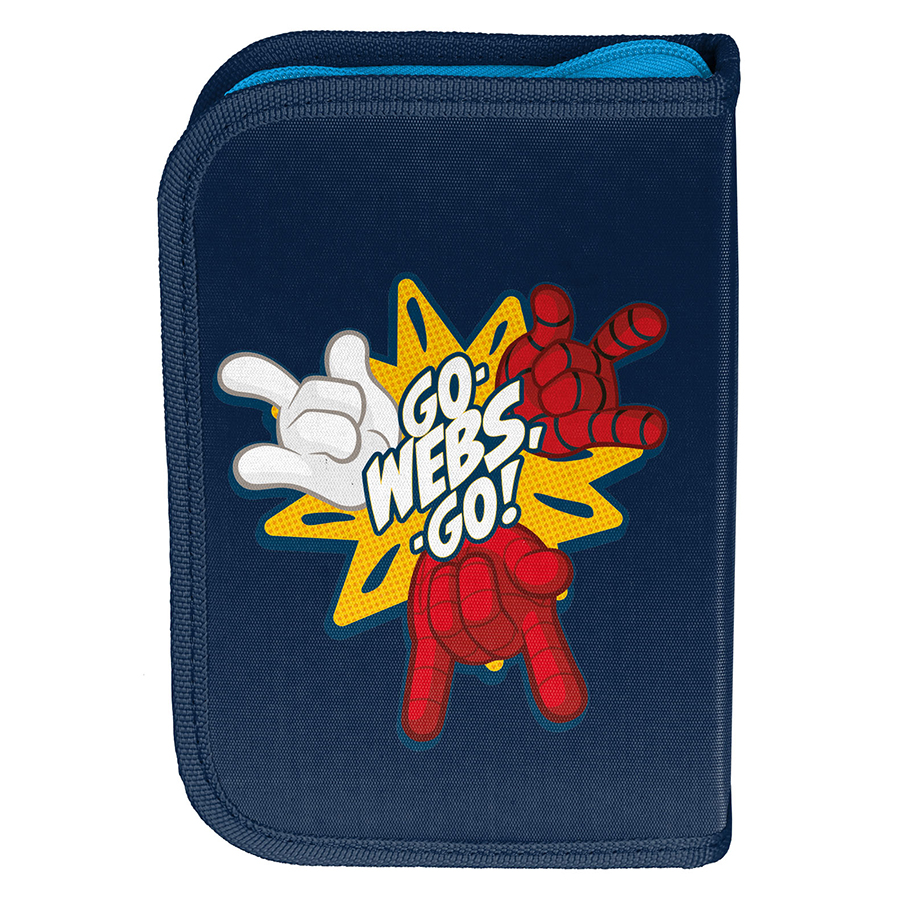 Piórnik bez wyposażenia Spidey. Uniwersalny, jednokomorowy model z dwiema klapkami na przybory, zapinany na zamek błyskawiczny. Piórnik bez trudu pomieści najważniejsze szkolne akcesoria, a znajdujące się wewnątrz uchwyty pozwolą zachować idealny porządek wśród przyborów. Dzięki swoim idealnym wymiarom nie zajmuje dużo miejsca w plecaku szkolnym.