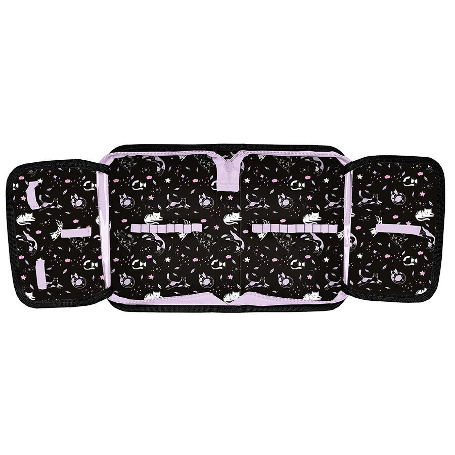 Piórnik Striped cat w wersji bez wyposażenia to uniwersalny model jednokomorowy, który wyposażono w dwie praktyczne klapki na przybory, zamykane na zamek błyskawiczny. Dzięki swojej pojemności bez trudu pomieści najważniejsze akcesoria szkolne, a wewnętrzne uchwyty zapewnią doskonały porządek wśród przyborów. Jego optymalne wymiary sprawiają, że nie zajmuje dużo miejsca w plecaku szkolnym.