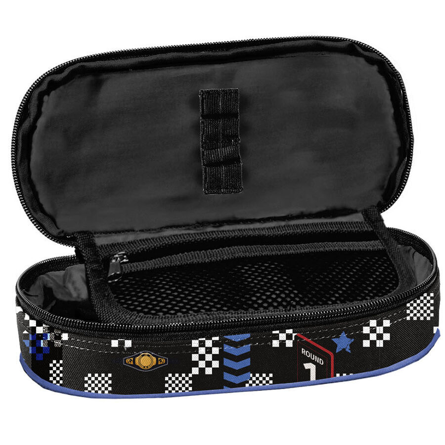 Piórnik Boxing club to praktyczny, jednokomorowy dodatek, który bez problemu pomieści wszystkie niezbędne akcesoria szkolne. W jego wnętrzu znajduje się klapka, z jednej strony wyposażona w uchwyty na ołówki, długopisy i inne przybory piśmiennicze, a z drugiej – funkcjonalna kieszonka na zamek z siatki. To idealne rozwiązanie dla tych, którzy potrzebują więcej miejsca, ponieważ pomieści także dodatkowe akcesoria, takie jak temperówka, klej, cyrkiel, korektor czy markery. W Paso dążymy do tego, aby nasze produkty były nie tylko niezwykle praktyczne, ale i uniwersalne. Ten piórnik zapewni porządek i sprawi, że wszystkie przybory zawsze znajdą swoje miejsce.