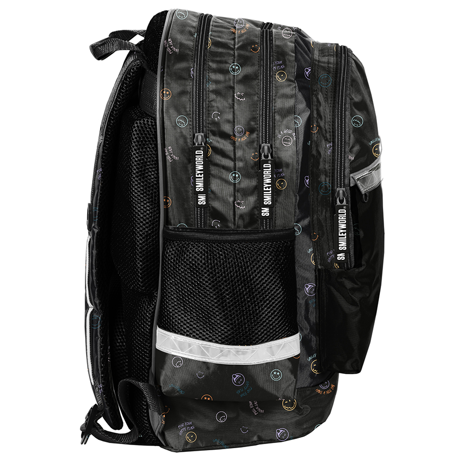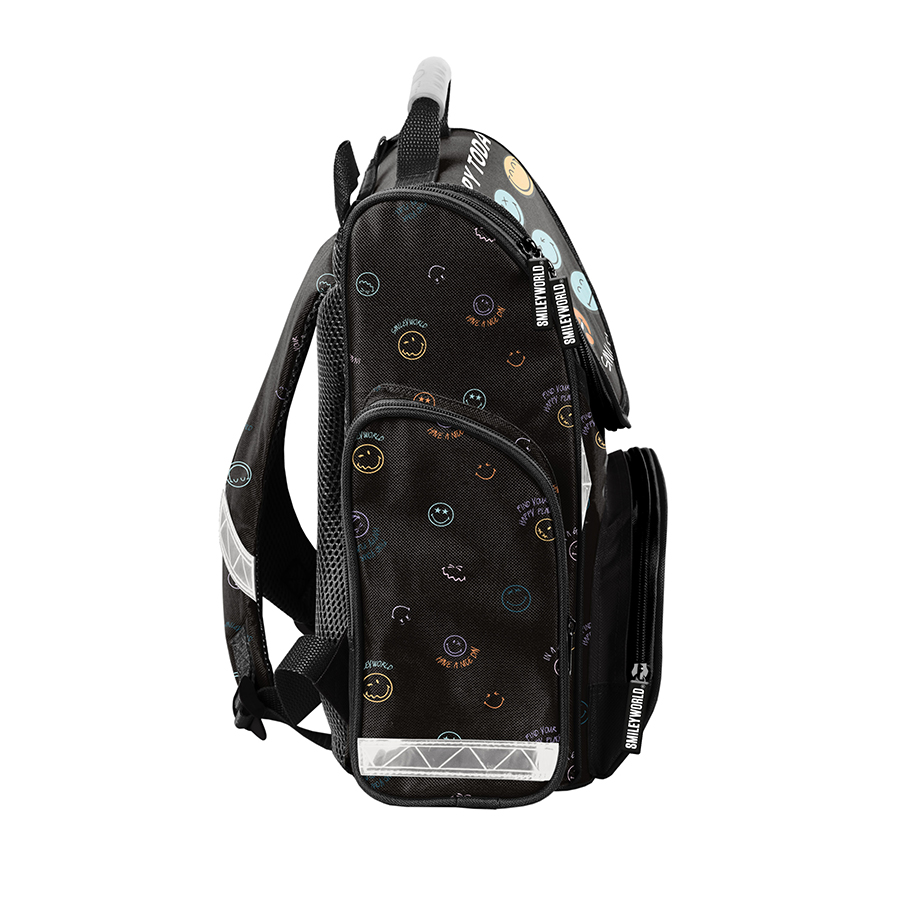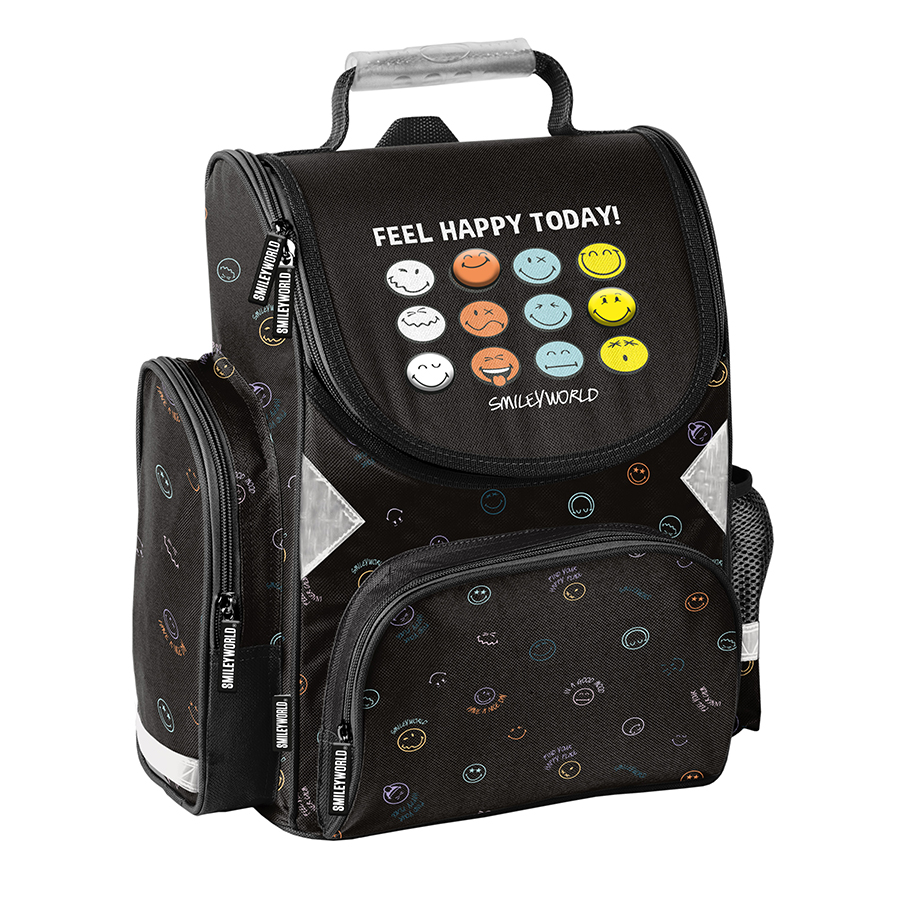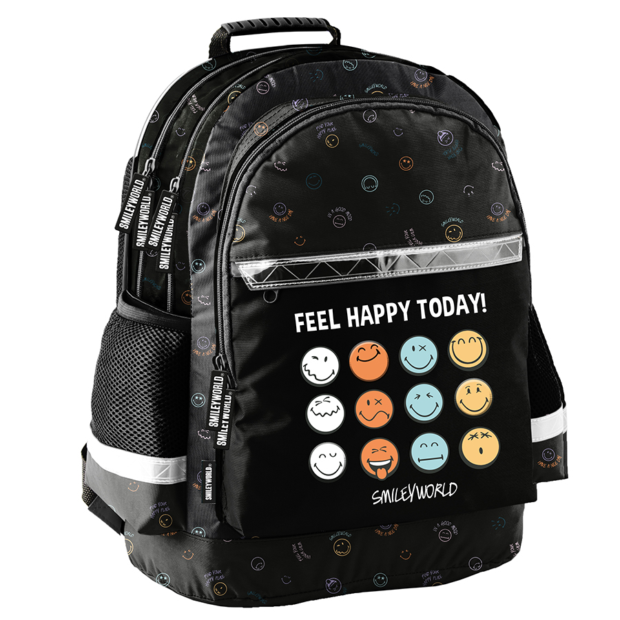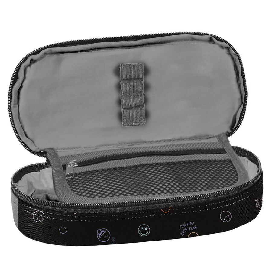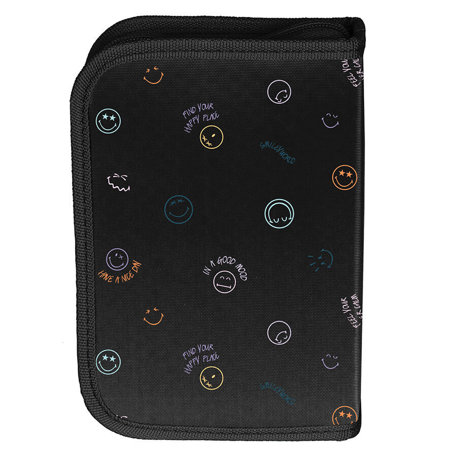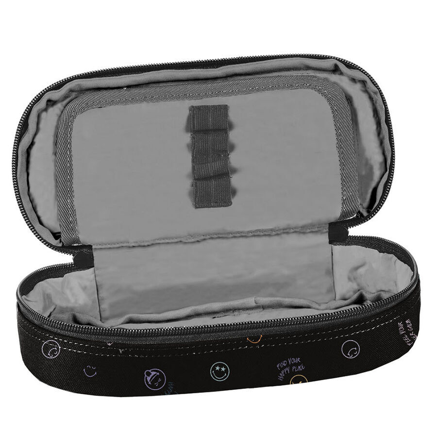 Piórnik Feel happy SmileyWorld to praktyczny, jednokomorowy dodatek, który bez problemu pomieści wszystkie niezbędne akcesoria szkolne. W jego wnętrzu znajduje się klapka, z jednej strony wyposażona w uchwyty na ołówki, długopisy i inne przybory piśmiennicze, a z drugiej – funkcjonalna kieszonka na zamek z siatki. To idealne rozwiązanie dla tych, którzy potrzebują więcej miejsca, ponieważ pomieści także dodatkowe akcesoria, takie jak temperówka, klej, cyrkiel, korektor czy markery. W Paso dążymy do tego, aby nasze produkty były nie tylko niezwykle praktyczne, ale i uniwersalne. Ten piórnik zapewni porządek i sprawi, że wszystkie przybory zawsze znajdą swoje miejsce.