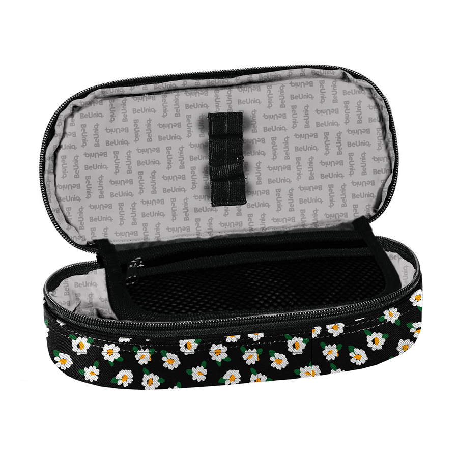 Piórnik Flowers BeUniq to wygodny, jednokomorowy piórnik, który bez trudu pomieści najważniejsze szkolne akcesoria. Wewnątrz piórnika znajduje się klapka, na której z jednej strony zamieszczone są uchwyty na ołówki, długopisy czy inne przybory piśmiennicze, z drugiej funkcjonalna kieszonka na zamek z siatki. Stanowi świetny dodatek do klasycznych piórników, które nie pomieszczą dodatkowych przyborów, takich jak temperówka, klej, cyrkiel, korektor czy markery. W Paso staramy się, aby nasze produkty były niezwykle poręczne i uniwersalne. Ten piórnik sprawi, że wszystko będzie znajdowało się zawsze na swoim miejscu.