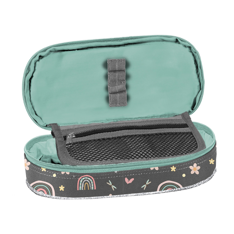 Piórnik Lovely Cat to niezwykle funkcjonalny, jednokomorowy dodatek, który z łatwością pomieści wszystkie niezbędne szkolne akcesoria. W jego wnętrzu znajduje się klapka z dwoma praktycznymi rozwiązaniami: z jednej strony umieszczono uchwyty na ołówki, długopisy oraz inne przybory piśmiennicze, a z drugiej – wygodną kieszonkę na zamek wykonaną z siatki. To doskonała alternatywa dla tradycyjnych piórników, które często nie mają wystarczająco dużo miejsca na dodatkowe przybory, takie jak temperówki, kleje, cyrkle, korektory czy markery. W Paso dążymy do tego, aby nasze produkty były nie tylko praktyczne, ale również uniwersalne. Z tym piórnikiem wszystko będzie mieć swoje miejsce.