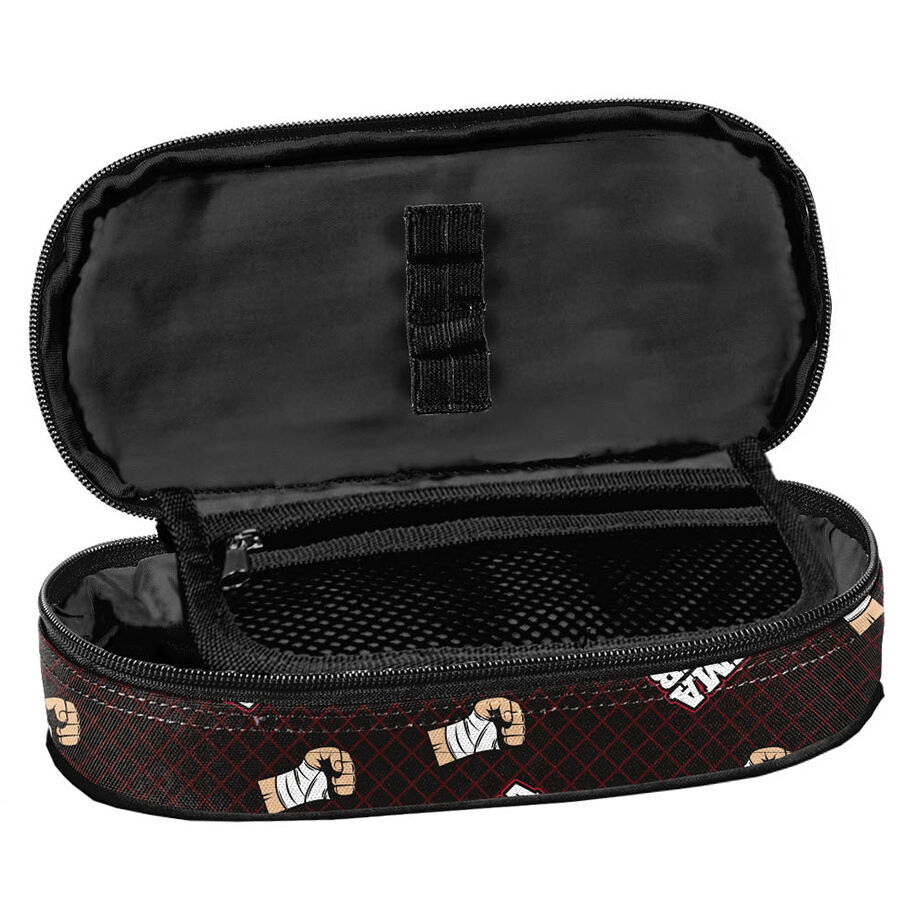 Piórnik MMA Club to wygodny, jednokomorowy piórnik, który bez trudu pomieści najważniejsze szkolne akcesoria. Wewnątrz piórnika znajduje się klapka, na której z jednej strony zamieszczone są uchwyty na ołówki, długopisy czy inne przybory piśmiennicze, z drugiej funkcjonalna kieszonka na zamek z siatki. Stanowi świetny dodatek do klasycznych piórników, które nie pomieszczą dodatkowych przyborów, takich jak temperówka, klej, cyrkiel, korektor czy markery. W Paso staramy się, aby nasze produkty były niezwykle poręczne i uniwersalne. Ten piórnik sprawi, że wszystko będzie znajdowało się zawsze na swoim miejscu.