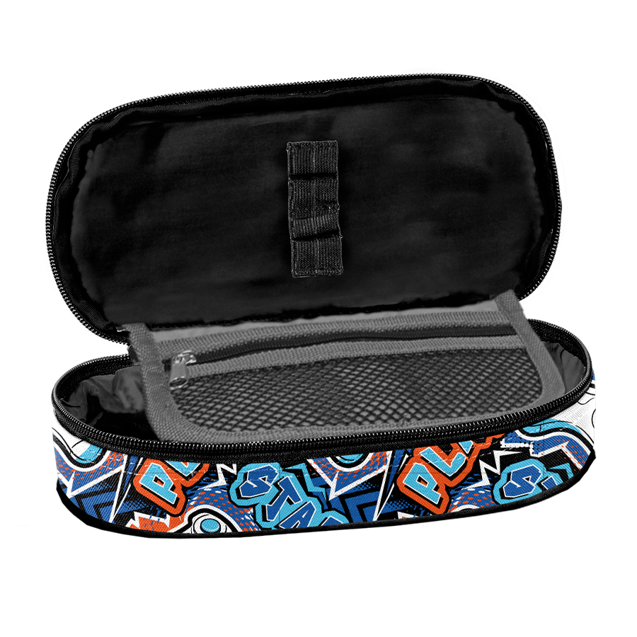 Piórnik Play to praktyczny, jednokomorowy dodatek, który bez problemu pomieści wszystkie niezbędne akcesoria szkolne. W jego wnętrzu znajduje się klapka, z jednej strony wyposażona w uchwyty na ołówki, długopisy i inne przybory piśmiennicze, a z drugiej – funkcjonalna kieszonka na zamek z siatki. To idealne rozwiązanie dla tych, którzy potrzebują więcej miejsca, ponieważ pomieści także dodatkowe akcesoria, takie jak temperówka, klej, cyrkiel, korektor czy markery. W Paso dążymy do tego, aby nasze produkty były nie tylko niezwykle praktyczne, ale i uniwersalne. Ten piórnik zapewni porządek i sprawi, że wszystkie przybory zawsze znajdą swoje miejsce.