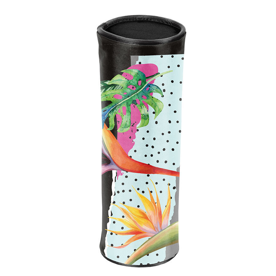 Piórnik tuba Egzotic to funkcjonalny dodatek do każdego plecaka. Składa się z jednej głównej komory, zamykanej na zamek błyskawiczny, który został wyposażony w ozdobny puller, ułatwiający wygodne zamykanie. Dzięki swojej pojemności, pomieści wszystkie niezbędne artykuły piśmiennicze oraz przybory szkolne. Jego uniwersalny kształt oraz kompaktowe rozmiary sprawiają, że zajmuje minimalną ilość miejsca, idealnie nadając się do szkolnych wypraw.