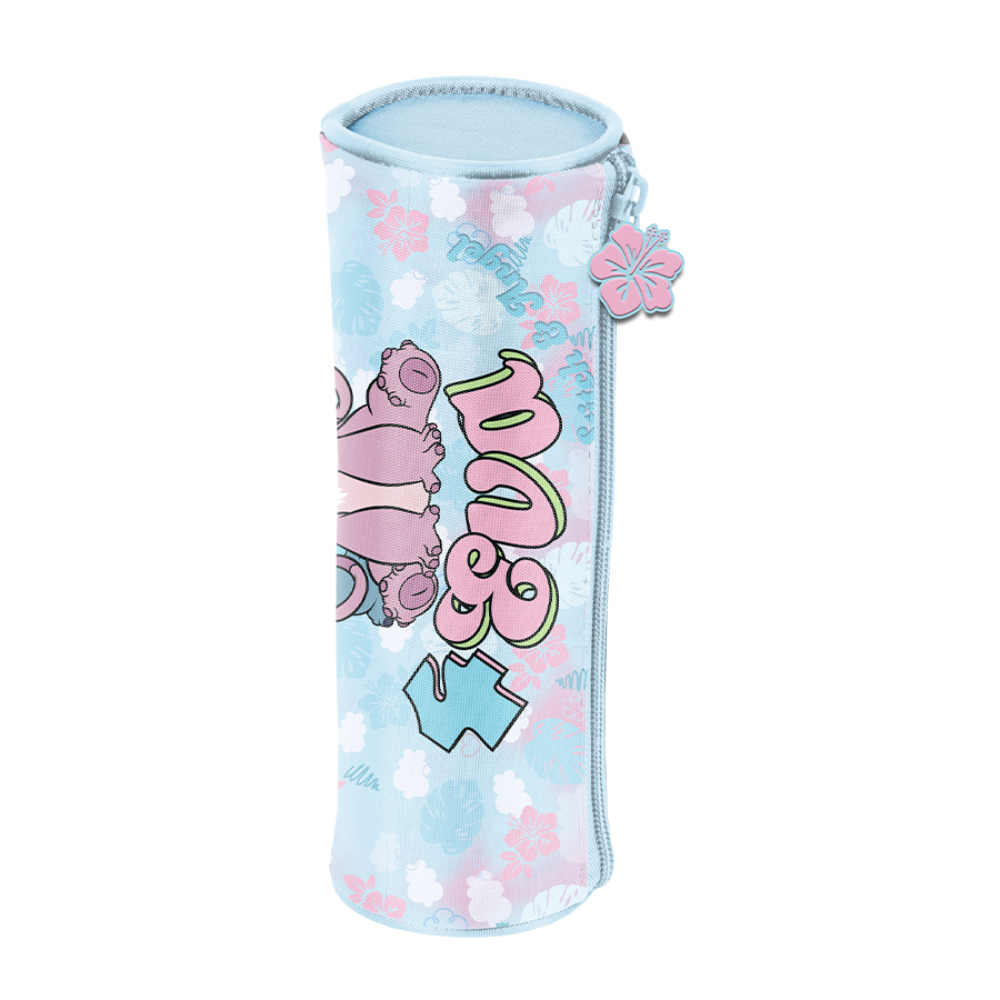 Piórnik tuba Stitch & Angel Ohana. Produkt składa się z jednej głównej komory zapinanej na zamek błyskawiczny z ozdobnym pullerem ułatwiającym zamykanie. Idealnie pomieści wszelkie niezbędne artykuły piśmiennicze oraz przybory szkolne. Ze względu na swój uniwersalny kształt i wielkość zajmuje niewielką ilość miejsca w plecaku szkolnym.