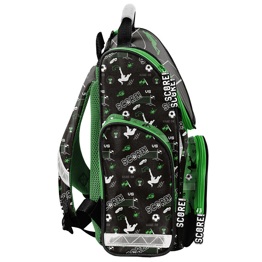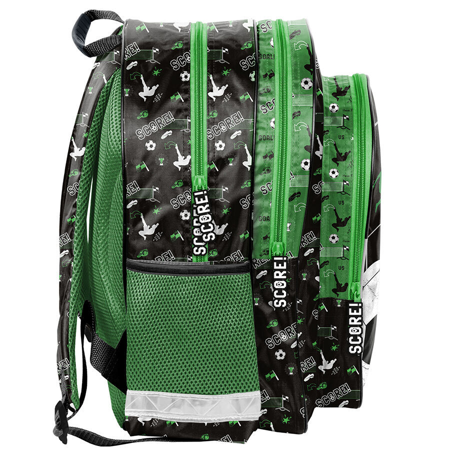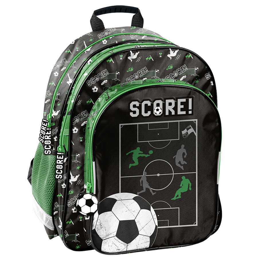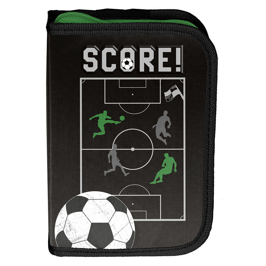 Piórnik z motywem Football score to doskonały wybór dla młodych superbohaterów. Ten uniwersalny, jednokomorowy model wyposażony jest w dwie klapki na przybory i zamykany jest na niezawodny zamek błyskawiczny. Z łatwością pomieści wszystkie niezbędne akcesoria szkolne. W zestawie znajdziemy długopis, ołówek, siedem pisaków, dziewięć kredek, gumkę, linijkę, temperówkę oraz ekierkę. Dodatkowe uchwyty wewnątrz piórnika pomagają w utrzymaniu idealnego porządku.