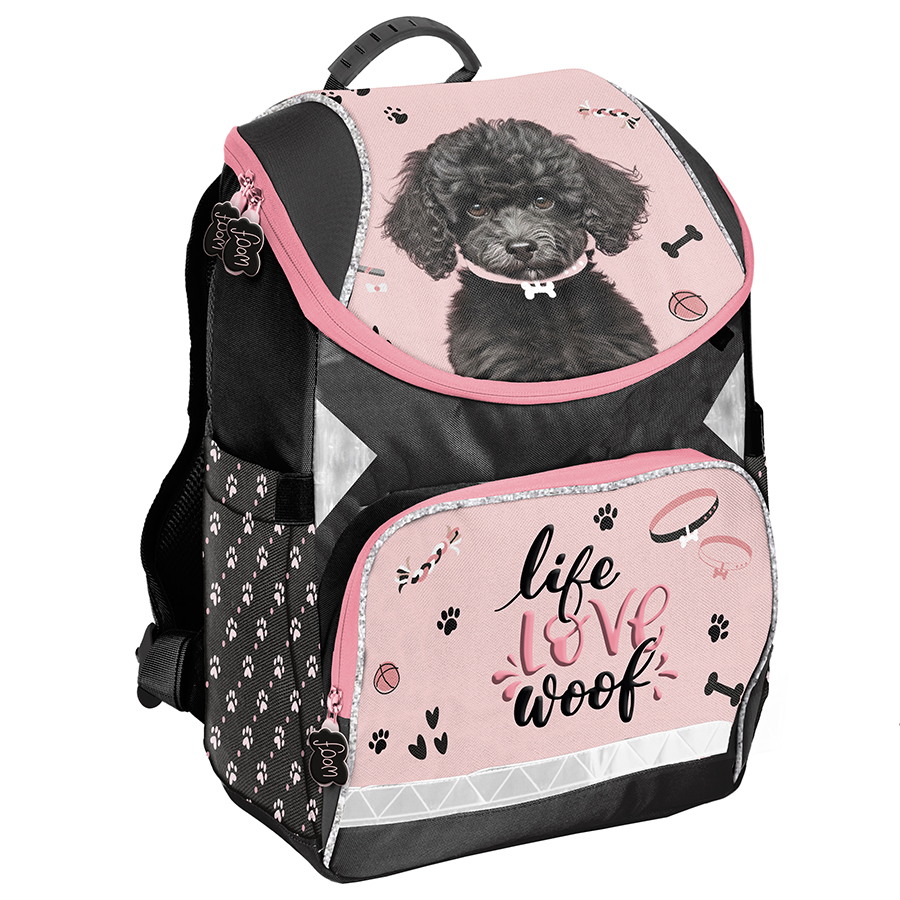 Piórnik z wyposażeniem w motywach Little puppy jest produktem o uniwersalnym zastosowaniu, charakteryzującym się jednokomorową konstrukcją oraz dwiema klapkami na przybory, zamykany na zamek błyskawiczny. Model ten z powodzeniem pomieści najważniejsze akcesoria szkolne. Dodatkowo, został wzbogacony o zestaw przyborów, w tym długopis, ołówek, siedem pisaków, dziewięć kredek, gumkę, linijkę, temperówkę oraz ekierkę. Wewnątrz piórnika znajdują się uchwyty, które umożliwiają zachowanie należytego porządku.