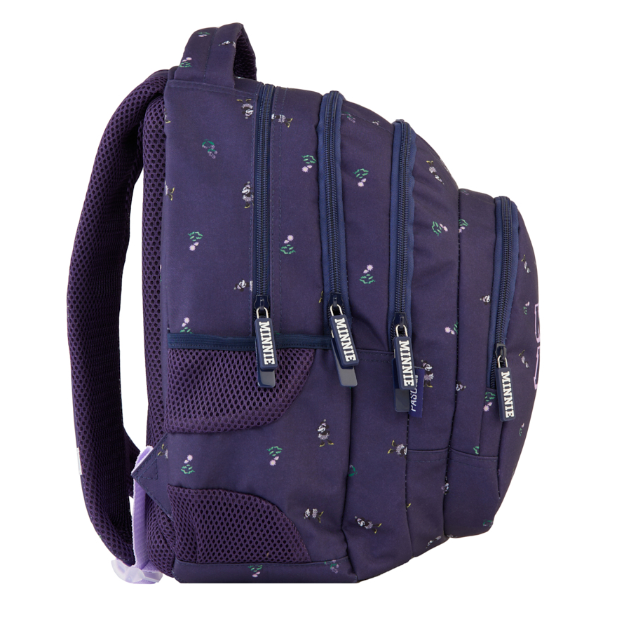 Plecak Minnie to doskonały wybór dla każdego młodego fana Myszki Minnie. Posiada trzy pojemne komory, kieszeń przednią z organizerem zamykaną na zamek oraz dwie boczne kieszonki, wykonane z siatki i materiału, które pomieszczą butelkę, bidon czy termos. W komorze głównej znajduje się przegroda na laptop, a w drugiej komorze organizer z kieszenią na zamek oraz uchwyt na klucze. Wzmocnione, profilowane plecy oraz miękkie, regulowane szelki zapewniają komfort noszenia. Plecak Minnie jest także wyposażony w elementy odblaskowe, usztywniony spód oraz wygodny uchwyt do przenoszenia. Plecak Minnie BeUniq to idealne rozwiązanie zarówno dla nastolatków, jak i młodszych dzieci. Sprawdź również naszą ofertę- Plecak do szkoły dla dziewczynek