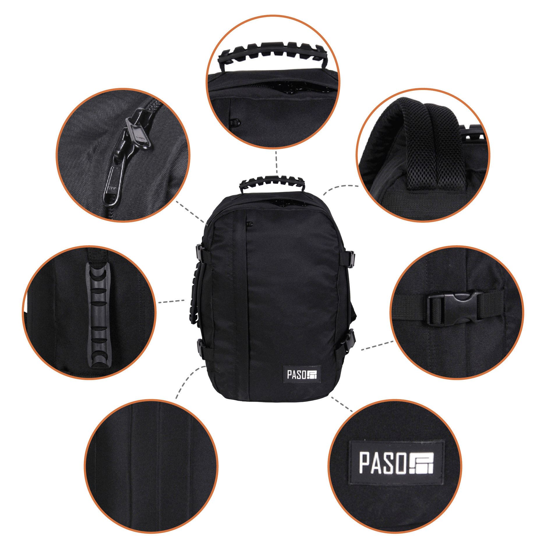 Plecak lotniczy premium Paso, spełnia normy bagażu podręcznego linii lotniczych takich jak Wizzair czy Ryanair.