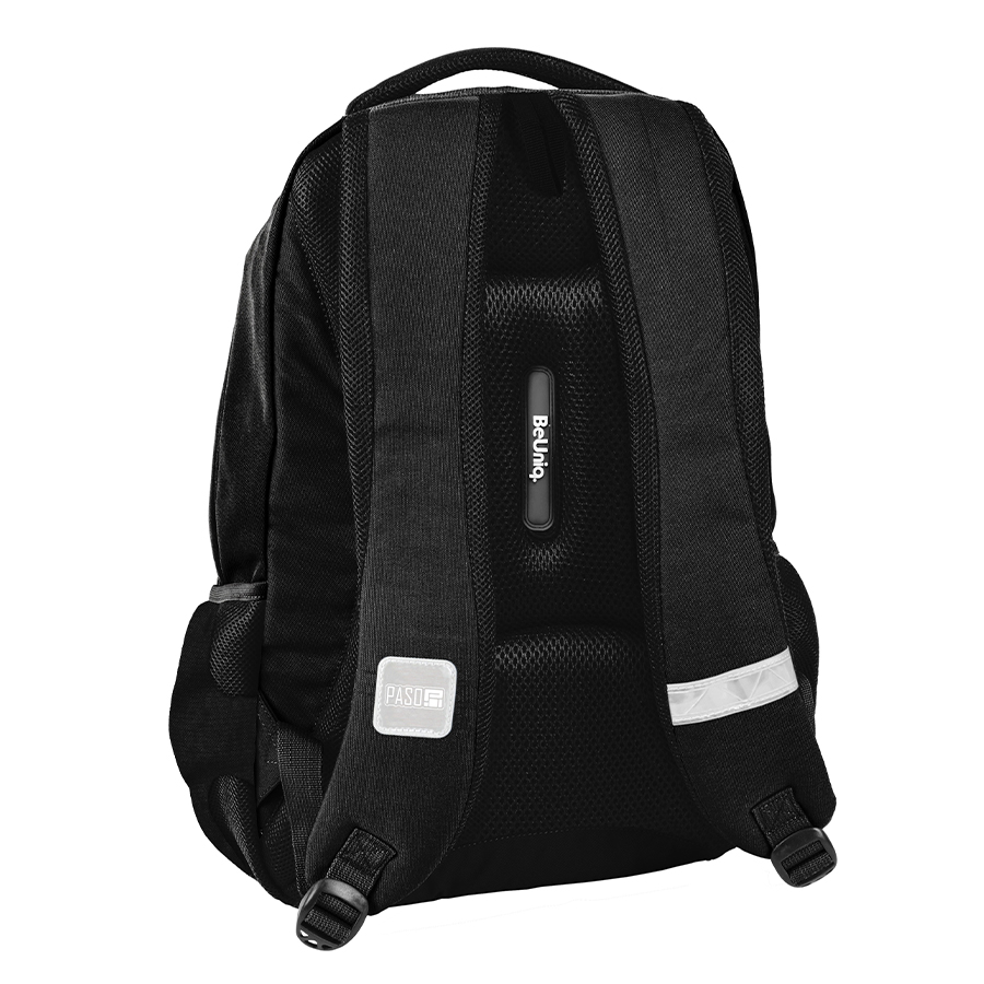 W głównej komorze plecaka jest przegródka na laptop, co czyni go użytecznym rozwiązaniem dla uczniów. W drugiej komorze można zmieścić różne akcesoria szkolne, a także znajduje się tam organizer z kieszenią na suwak oraz uchwyt na klucze. Plecak zaprojektowano z myślą o wygodzie użytkowania – ma wzmocnione, profilowane plecy oraz miękkie, regulowane szelki, które zapewniają komfort noszenia.