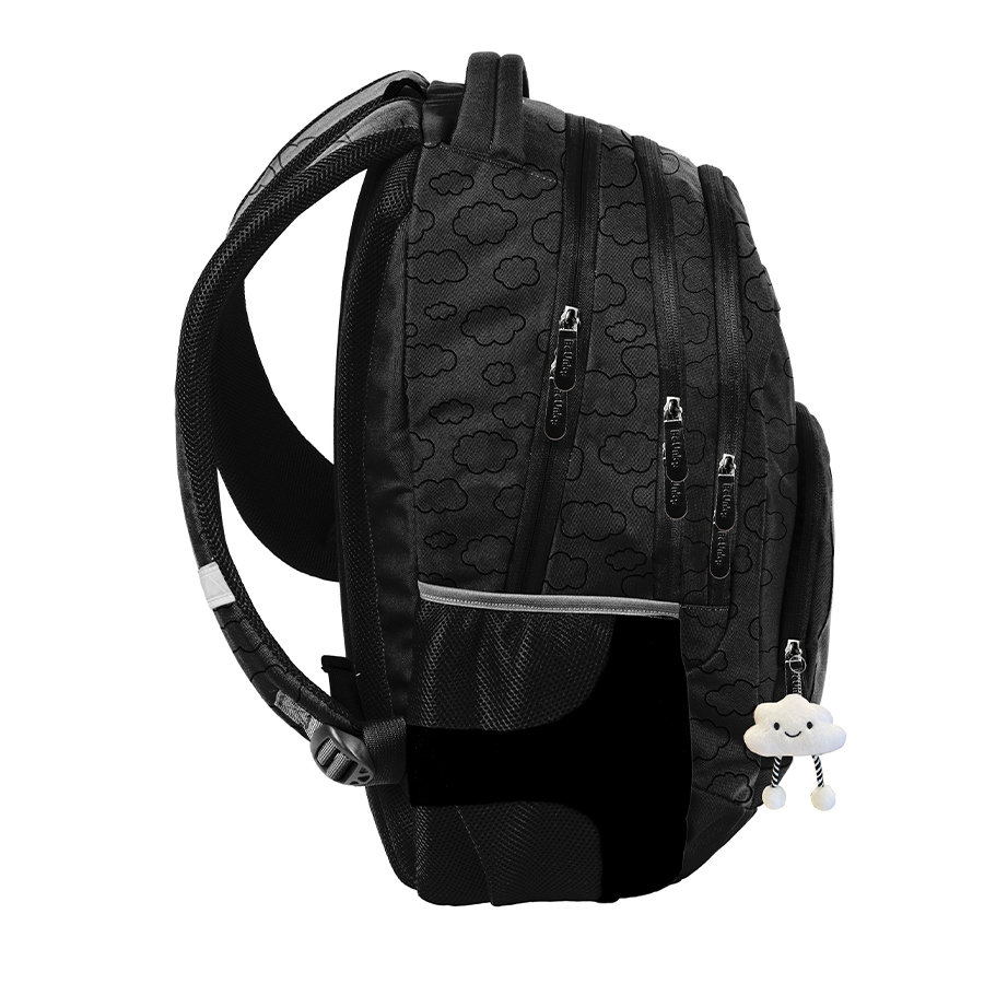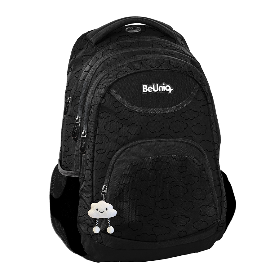 Plecak młodzieżowy Cloud BeUniq to doskonały wybór dla każdego młodego ucznia. Wyposażony jest w trzy pojemne komory, co zapewnia wygodną organizację przestrzeni. Z przodu znajduje się kieszeń z organizerem, zamykana na zamek, a po bokach plecaka umieszczono dwie siatkowe kieszonki, idealne na butelkę, bidon lub termos.
