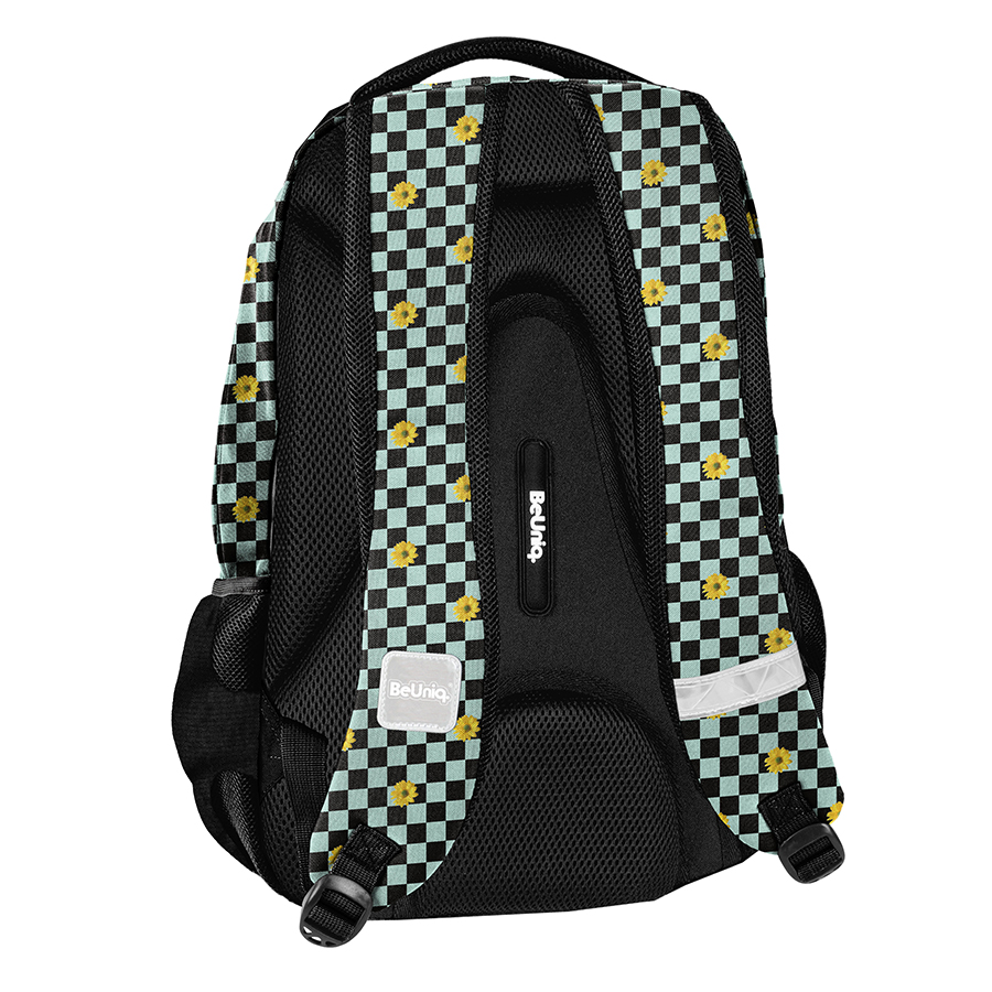 Plecak młodzieżowy Sunflower BeUniq to idealny wybór dla każdego młodego ucznia. Posiada trzy przestronne komory, co gwarantuje komfortową organizację miejsca. Z przodu plecaka znajduje się kieszeń z organizerem, która jest zamykana na zamek. Po bokach plecaka znajdują się dwie kieszenie z siatki, które nadają się do przechowania butelki lub bidonu.
