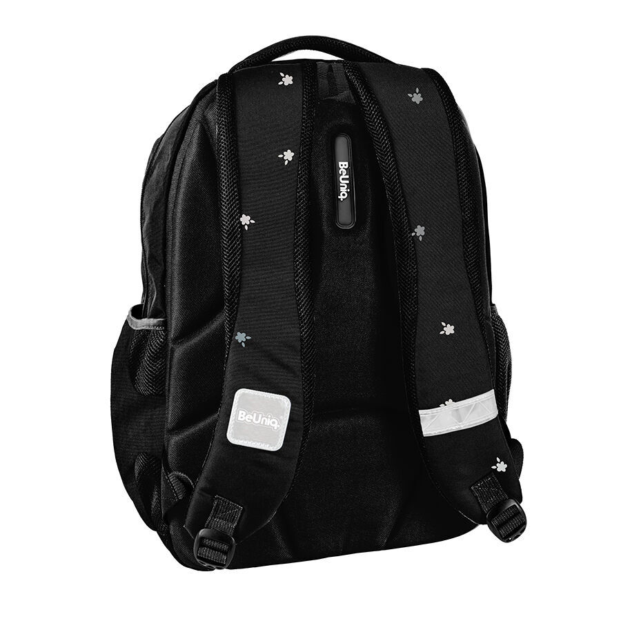 Plecak młodzieżowy White flowers BeUniq to doskonały wybór zarówno do szkoły, jak i na co dzień! Oferuje trzy pojemne komory z dwukierunkowym zamkiem, a także przednią kieszeń zapinaną na zamek z designerskim pullerem. Dodatkowe dwie boczne kieszenie wykonane z siatki i materiału są idealne na butelkę, bidon lub termos. W głównej komorze znajdziesz przegrodę na laptopa, a w trzeciej – organizer na drobiazgi. Jedna z komór jest wyposażona w praktyczne wyjście na słuchawki.