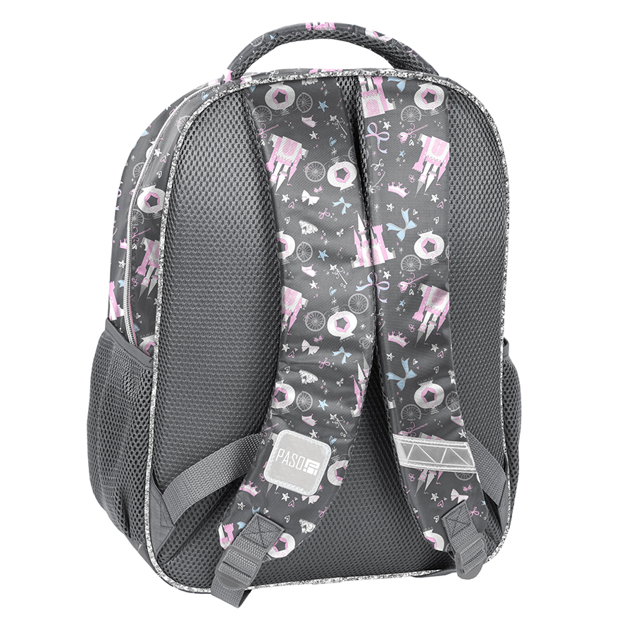 Plecak szkolny Baletnica. Produkt składa się z dwóch dużych komór, kieszeni na froncie oraz z dwóch bocznych kieszonek wykonanych z siatki. W kieszonkach z łatwością pomieści się termos czy bidon. Elementy odblaskowe umieszczone na plecaku sprawiają, że dziecko będzie jeszcze bardziej widoczne, a co za tym idzie – bezpieczne. Usztywniane gąbką, ergonomiczne wyprofilowane plecy oraz regulowane szelki pokryte miękkim materiałem zapewniają dziecku prawidłową postawę i odciążają kręgosłup. Dzięki tym cechom plecak jest bardzo komfortowy, a noszenie podręczników oraz zeszytów jest niezwykle wygodne. Plecak wyposażony jest w wygodny uchwyt do przenoszenia oraz usztywnione i wzmocnione dno. Wygodne ozdobne pullery ułatwiają odpinanie zamków. Plecak uszyty jest z materiału odpornego na przemakanie.