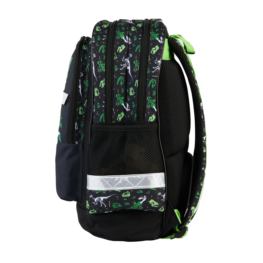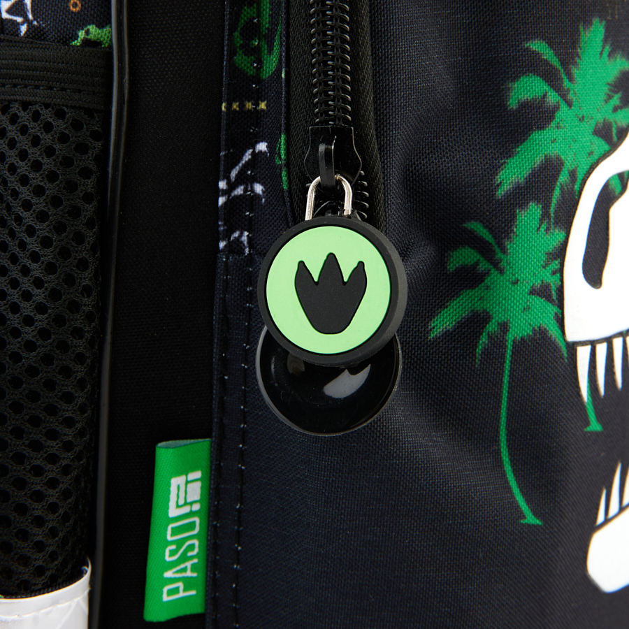 Szkolny plecak dinozaur Paso to idealny towarzysz każdego małego odkrywcy. Plecak szkolny posiada dwie obszerne komory, które pomieszczą wszystkie niezbędne szkolne przybory oraz książki. Dodatkowo wyposażony jest w dwie duże kieszenie z przodu, doskonałe do przechowywania dodatkowych akcesoriów, jak piórnik czy kalendarz. Boczne kieszenie z siatki idealnie nadają się na bidon z napojem.