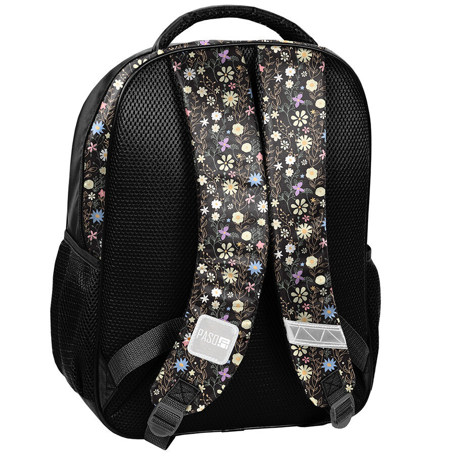 Plecak szkolny Flowers Myszka Minnie o tematyce bajkowej jest produktem składającym się z dwóch przestronnych komór, przedniej kieszeni oraz dwóch bocznych kieszonek wykonanych z siatki. Kieszonki te umożliwiają wygodne przechowywanie termosu lub bidonu. Elementy odblaskowe umieszczone na plecaku zwiększają widoczność dziecka, co przyczynia się do jego bezpieczeństwa.