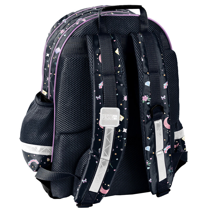 Plecak szkolny w motywie Magic Unicorn to idealny wybór dla każdego małego ucznia. Wyposażony w dwie przestronne komory oraz dwie duże kieszenie frontowe, zapewnia mnóstwo miejsca na książki, zeszyty i inne niezbędne akcesoria. Dodatkowo, plecak ma dwie boczne kieszonki z siatki, idealne na drobne przedmioty lub bidon z napojem.