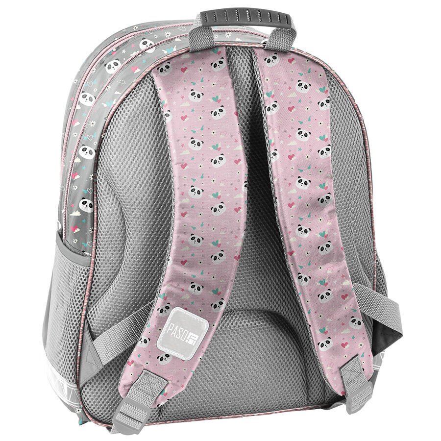 Plecak szkolny Panda with love to produkt cechujący się wysoką funkcjonalnością. Wyposażony jest w dwie obszerne komory zamykane na zamek, a także jedną pojemną kieszeń umiejscowioną na froncie. Dwie boczne kieszenie z siatki umożliwiają swobodne przechowywanie bidonu, małej butelki lub termosu. Dodatkowo, plecak został wzbogacony o liczne elementy odblaskowe, co zapewnia lepszą widoczność dziecka na drodze.