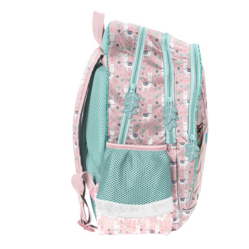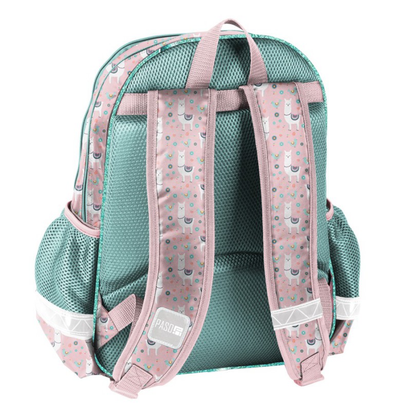 Plecak szkolny Paso Lama. Budowa plecaka jest przemyślana i wygodna, co zapewnia dobrą organizację wewnątrz. Produkt składa się z dwóch dużych komór zapinanych na zamek, kieszeni na froncie oraz z dwóch bocznych kieszonek wykonanych z siatki, w których pomieści się butelka, mały termos lub bidon. Elementy odblaskowe umieszczone na plecaku sprawiają, że dziecko będzie jeszcze bardziej widoczne, a co za tym idzie – bezpieczne. Usztywniane gąbką, ergonomiczne wyprofilowane i pokryte siatką plecy oraz regulowane szelki pokryte miękkim materiałem zapewniają dziecku prawidłową postawę i odciążają kręgosłup. Dzięki tym cechom plecak jest bardzo komfortowy a noszenie podręczników oraz zeszytów jest niezwykle wygodne. Plecak wyposażony jest w usztywnione dno. Uszyty jest z materiału odpornego na przemakanie.