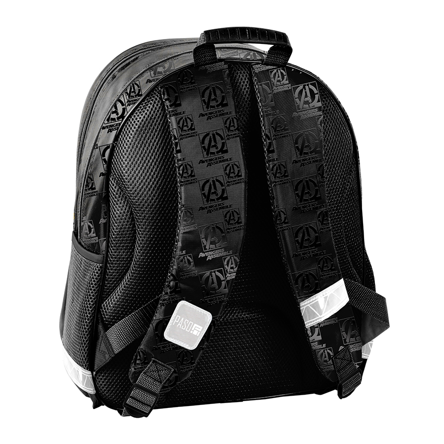 Plecak szkolny Power Avengers. Wyposażony jest w dwie duże komory zapinane na zamek oraz jedną bardzo obszerną kieszeń na froncie. Dwie kieszenie z siatki umiejscowione po bokach swobodnie pomieszczą bidon, małą butelkę lub termos. Plecak posiada liczne elementy odblaskowe, dzięki którym dziecko będzie widoczne na drodze. Usztywniane gąbką, ergonomiczne wyprofilowane plecy oraz regulowane szelki pokryte miękkim materiałem zapewniają dziecku prawidłową postawę i odciążają kręgosłup. Dzięki tym cechom plecak jest bardzo komfortowy, a noszenie podręczników oraz zeszytów jest niezwykle wygodne. Plecak uszyty jest z materiału odpornego na przemakanie.
