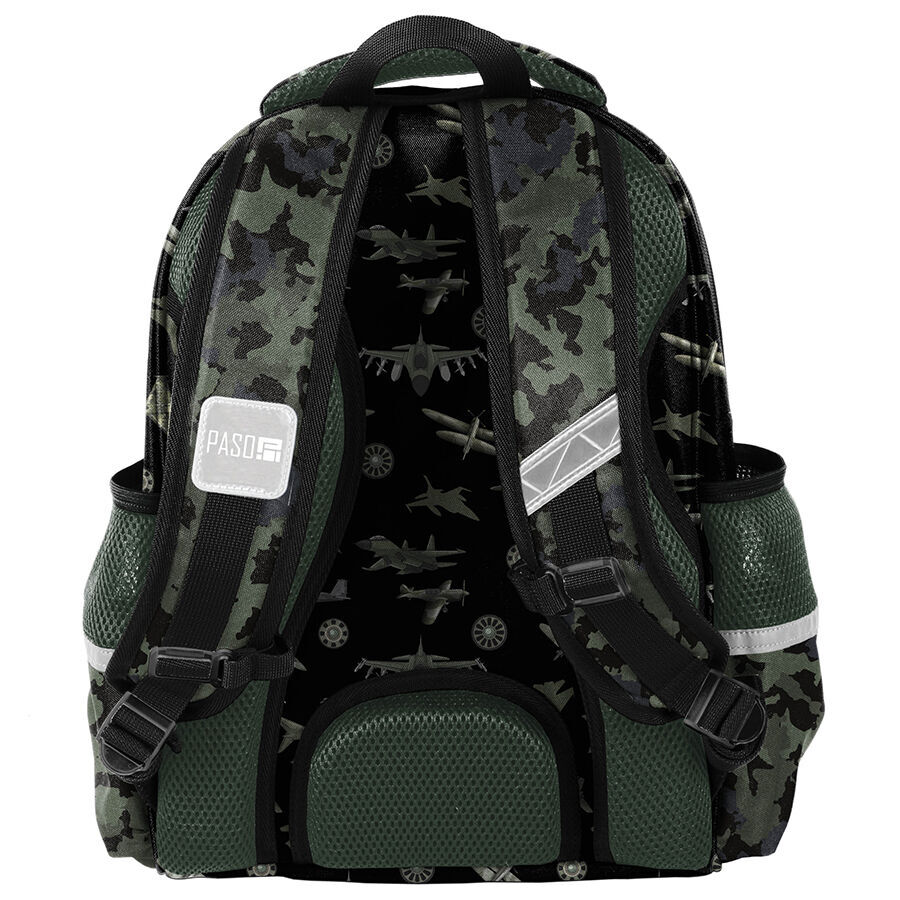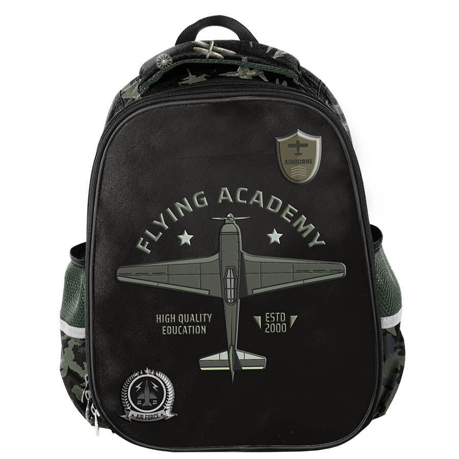 Plecak premium Flying Academy to doskonały wybór dla każdego miłośnika samolotów i floty wojskowej . Posiada dwie komory, które łączą praktyczność z estetyką. Główna komora została wzbogacona o wewnętrzne przegrody, które ułatwiają organizację i utrzymanie porządku w spakowanych przedmiotach. Z kolei przednia komora oferuje dobrze zaprojektowany organizer oraz funkcjonalne kieszonki, idealne na dodatkowe akcesoria szkolne.