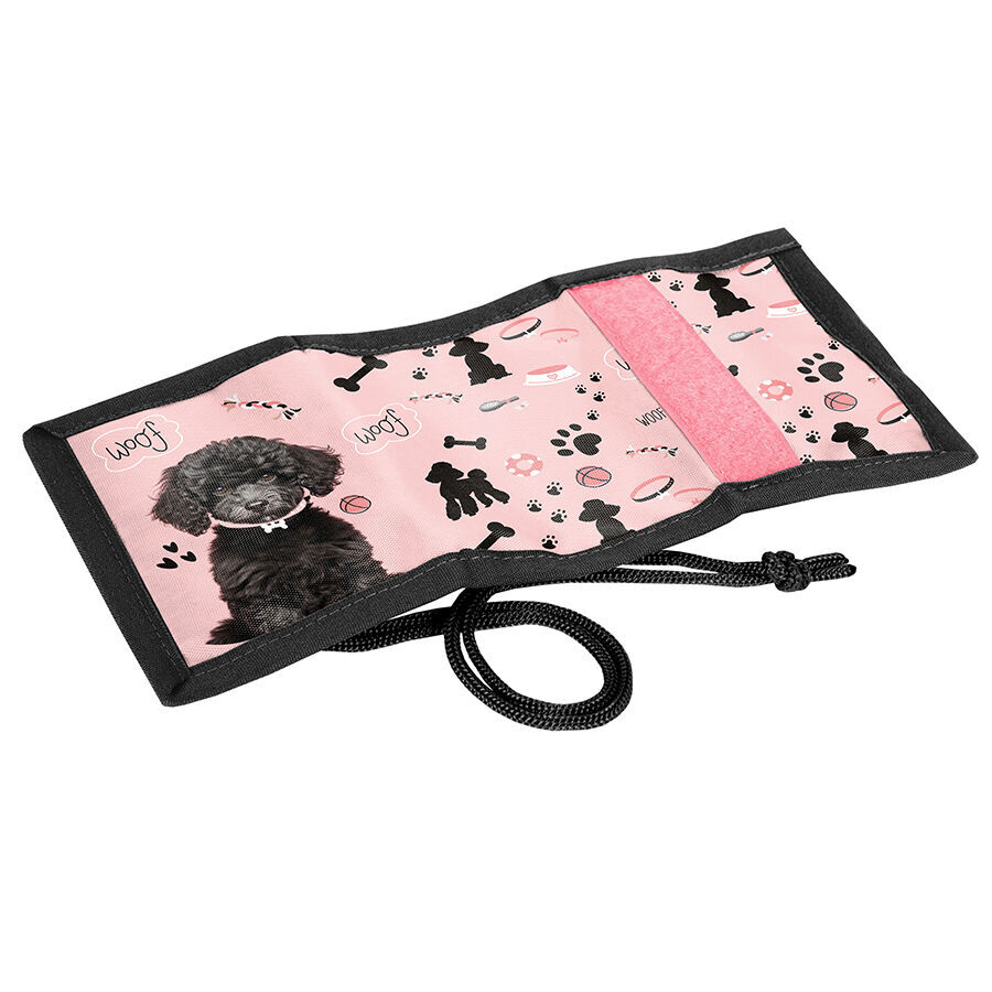 Portfel Little puppy ze sznurkiem to produkt zaprojektowany z myślą o praktyczności i funkcjonalności. Wyposażony jest w liczne przegródki, które umożliwiają efektywną organizację zawartości. Wewnątrz portfela znajduje się kieszonka na zamek, przeznaczona na monety, a także przeźroczysta kieszonka, idealna do umieszczenia małego zdjęcia. Obszerna kieszeń, rozciągająca się na całą długość portfela w pozycji rozłożonej, pomieści papierowe banknoty, natomiast dwie dodatkowe przegrody mogą służyć do przechowywania różnorodnych informacji. Model ten został wyposażony w sznurek, który umożliwia zawieszenie lub przymocowanie portfela w wygodny sposób.