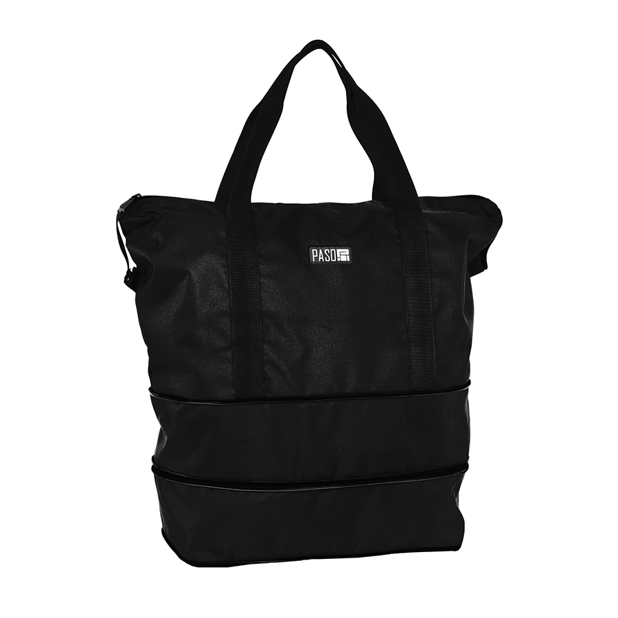 Pojemna i funkcjonalna torba podróżna na ramię PASO. W modelu zastosowano niezwykle oryginale rozwiązanie systemu zamków na dnie pozwalające dostosować głębokość torby do potrzeb użytkownika. Model posiada pojemną komorę główną zapinaną na zamek, wyposażoną w kieszonkę na suwak, która bez problemu pomieści drobne akcesoria oraz mniejszą kieszonkę w formie organizera. Torba posiada dwa wytrzymałe uchwyty do przenoszenia. Dodatkową zaletą modelu jest wzmocniony spód, gwarantujący stabilność oraz zwiększający wytrzymałość na obciążenie. Mocny, a zarazem odporny na przemakanie materiał zewnętrzny jak i znajdująca się wewnątrz, wysokiej jakości podszewka gwarantują długotrwałość użytkowania.