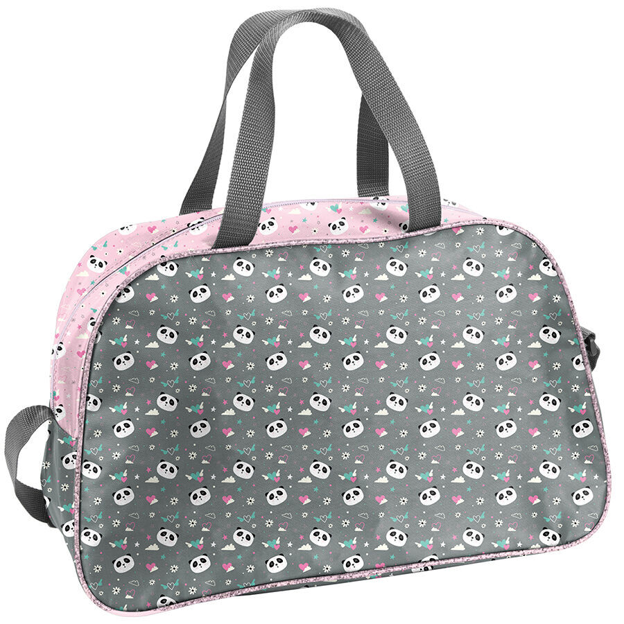 Torba sportowa Panda with love stanowi doskonały wybór zarówno na basen, jak i na inne zajęcia sportowe. Sprawdzi się również znakomicie podczas wyjazdów weekendowych oraz wakacyjnych. Produkt wyposażony jest w jedną pojemną komorę, zamykaną na dwukierunkowy zamek błyskawiczny z ozdobnym uchwytem. Model ten posiada usztywniane dno, dwa wygodne uchwyty do przenoszenia oraz regulowany pasek na ramię, którego długość wynosi od minimum 60 cm do maksimum 120 cm.