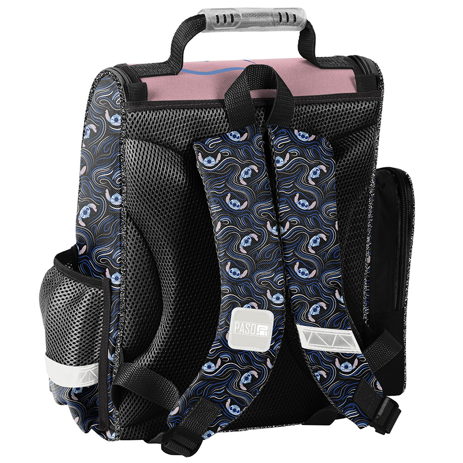 Na przedniej części tornistra znajduje się praktyczna kieszeń zamykana na zamek, a po bokach umieszczono dwie kieszonki – jedna z siatki doskonale nadaje się na bidon lub butelkę, druga jest z materiału zapinana na zamek. Ergonomicznie ukształtowane, sztywne plecy skutecznie odciążają kręgosłup małego właściciela, a miękkie, regulowane i profilowane szelki dbają o prawidłową postawę dziecka. Dodatkowo, tornister ma usztywniony spód oraz elementy odblaskowe, które zwiększają bezpieczeństwo podczas spacerów po zmroku.