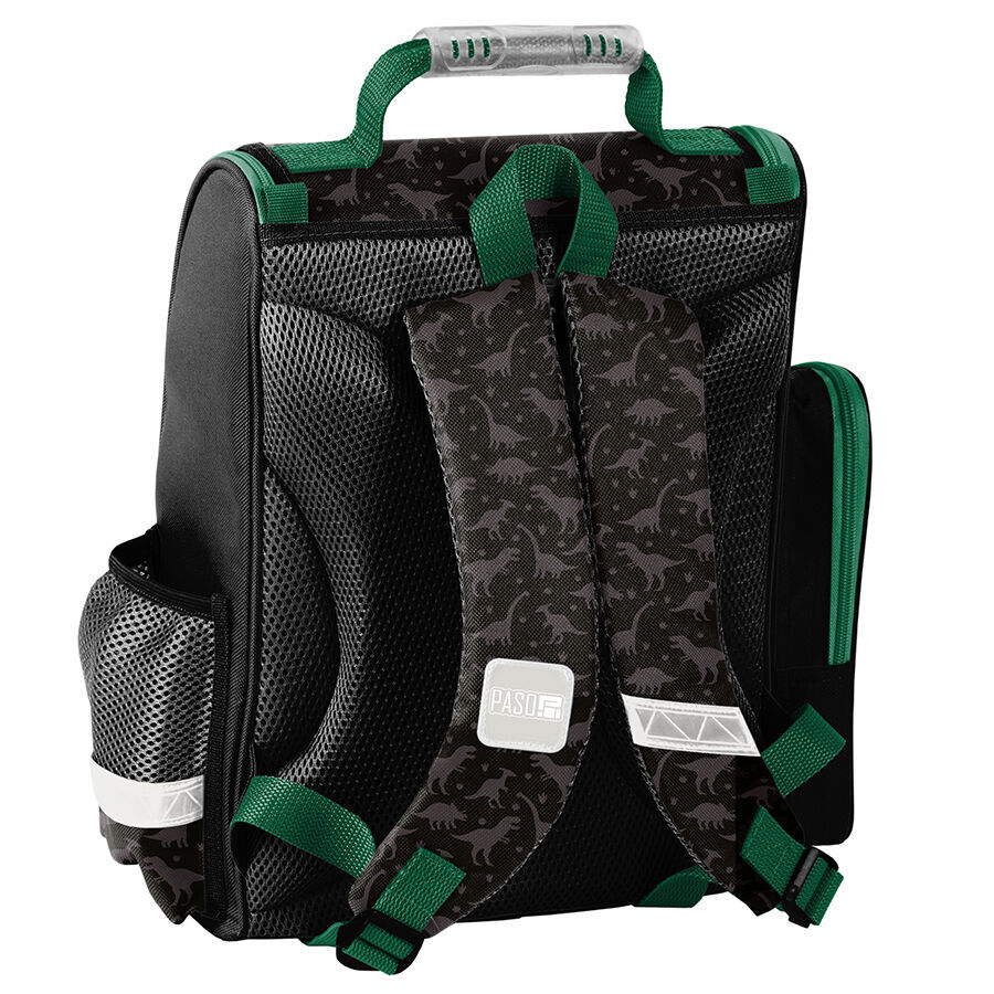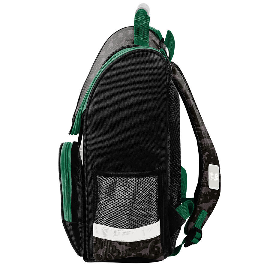 Na przedniej części tornistra znajduje się praktyczna kieszeń zamykana na zamek, a po bokach umieszczono dwie kieszonki – jedna z siatki doskonale nadaje się na bidon lub butelkę, druga jest z materiału zapinana na zamek. Ergonomicznie ukształtowane, sztywne plecy skutecznie odciążają kręgosłup małego właściciela, a miękkie, regulowane i profilowane szelki dbają o prawidłową postawę dziecka. Dodatkowo, tornister ma usztywniony spód oraz elementy odblaskowe, które zwiększają bezpieczeństwo podczas spacerów po zmroku.
