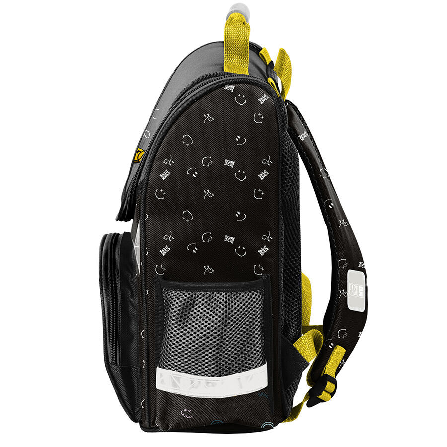 Tornister szkolny See the good SmileyWorld charakteryzuje się jedną obszerną komorą, która jest zapinana na dwukierunkowy zamek, wyposażony w ozdobne pullery ułatwiające jego zamykanie. Wnętrze tornistra zawiera przegrody, które umożliwiają dziecku utrzymanie porządku wśród przechowywanych przedmiotów. Na przedniej części tornistra znajduje się funkcjonalna kieszeń, zapinana na zamek. Po bokach tornistra umieszczono dwie kieszonki: jedna z siatki, idealna do przechowywania bidonu lub butelki, a druga zapinana na zamek. Ergonomicznie ukształtowane, sztywne plecy stanowią wsparcie dla kręgosłupa młodego użytkownika. Miękkie, regulowane oraz wyprofilowane szelki zapewniają prawidłową i zdrową postawę ciała dziecka. Tornister wyposażony jest w usztywniony spód oraz elementy odblaskowe, co zwiększa jego funkcjonalność i bezpieczeństwo.