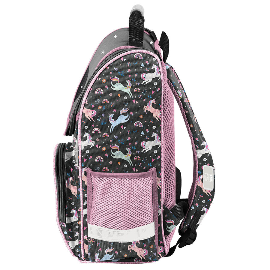 Tornister szkolny Unicorns are real łączy w sobie funkcjonalność i atrakcyjny design. Posiada jedną przestronną komorę, zamykaną na dwukierunkowy zamek z ozdobnymi pullerami, które ułatwiają zamykanie. Wnętrze tornistra wyposażone jest w przegrody, które pomogą dziecku zachować porządek wśród wszystkich potrzebnych przyborów.