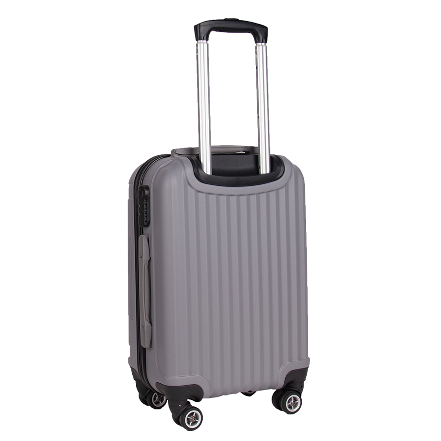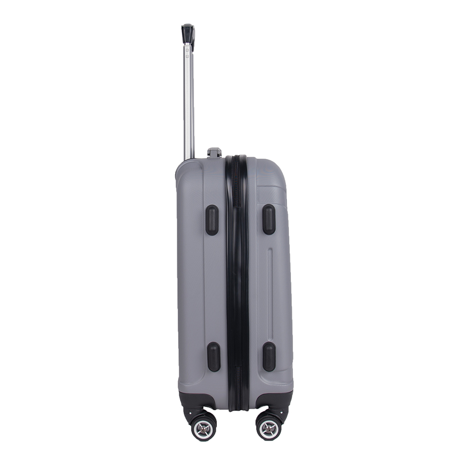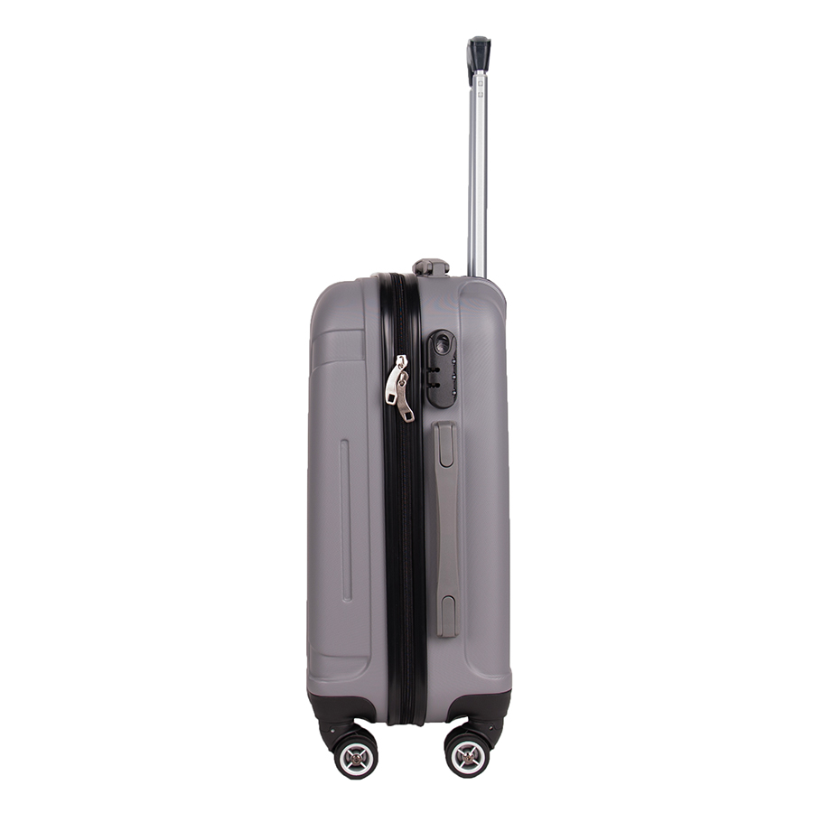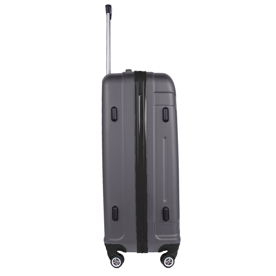 Lekka walizka na czterech kółkach obrotowych. Wykonana z twardego odpornego na zarysowania tworzywa ABS. Jedna część zamykana przegrodą z dodatkowymi kieszonkami, druga część zabezpieczana pasami spinającymi. Wygodna rączka, stelaż wewnętrzny, zamek szyfrowy. Dwa wygodne uchwyty do przenoszenia górny i boczny.