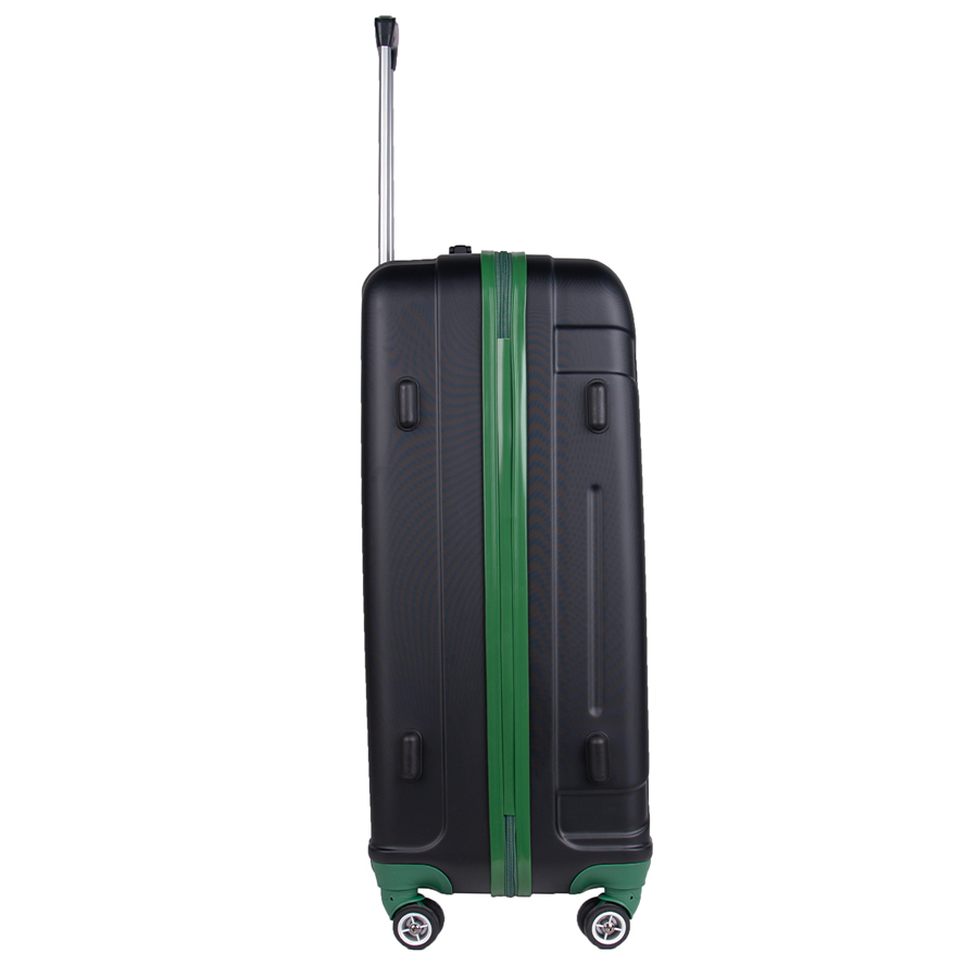 Lekka walizka na czterech kółkach obrotowych. Wykonana z twardego odpornego na zarysowania tworzywa ABS. Jedna część zamykana przegrodą z dodatkowymi kieszonkami, druga część zabezpieczana pasami spinającymi. Wygodna rączka, stelaż wewnętrzny, zamek szyfrowy. Dwa wygodne uchwyty do przenoszenia górny i boczny.