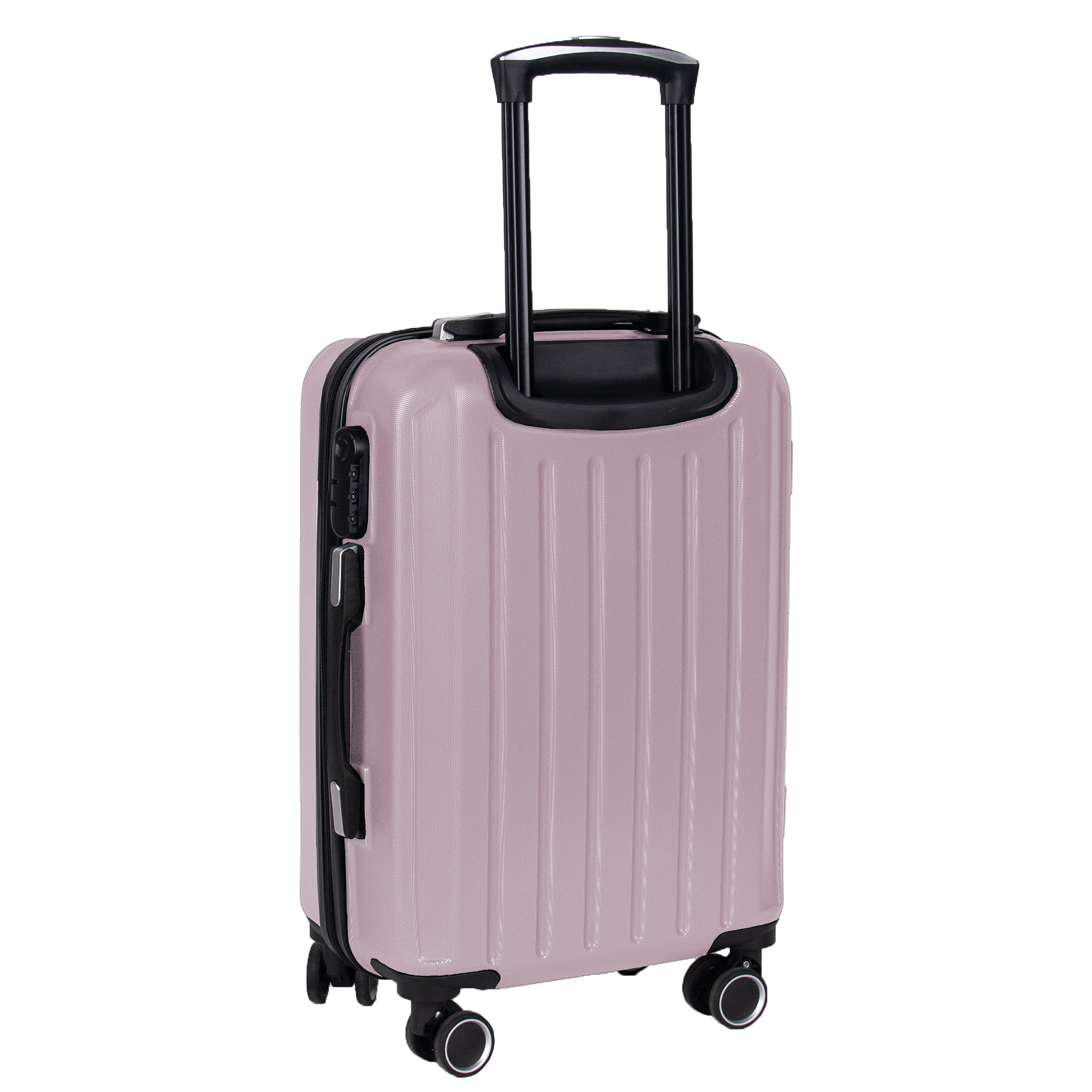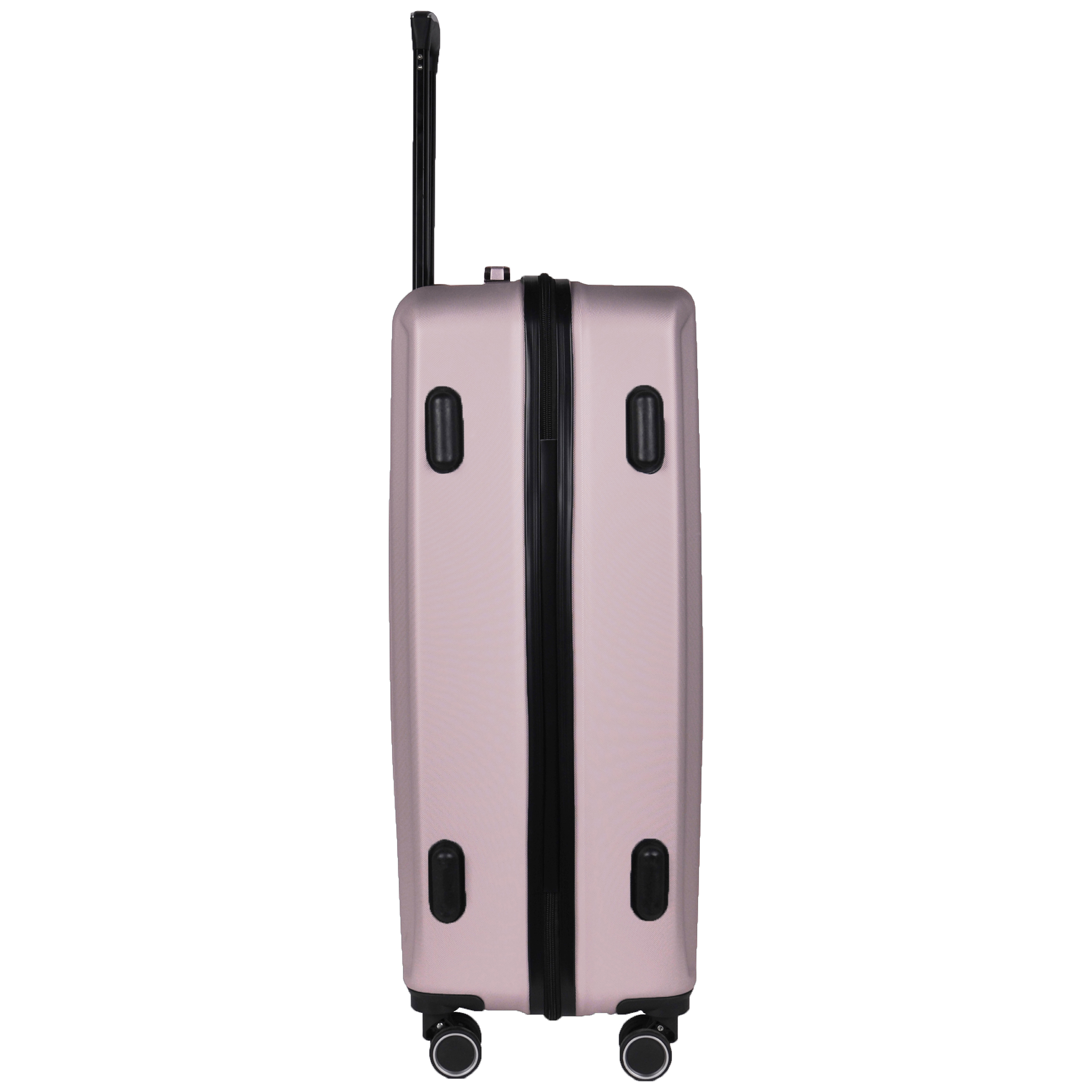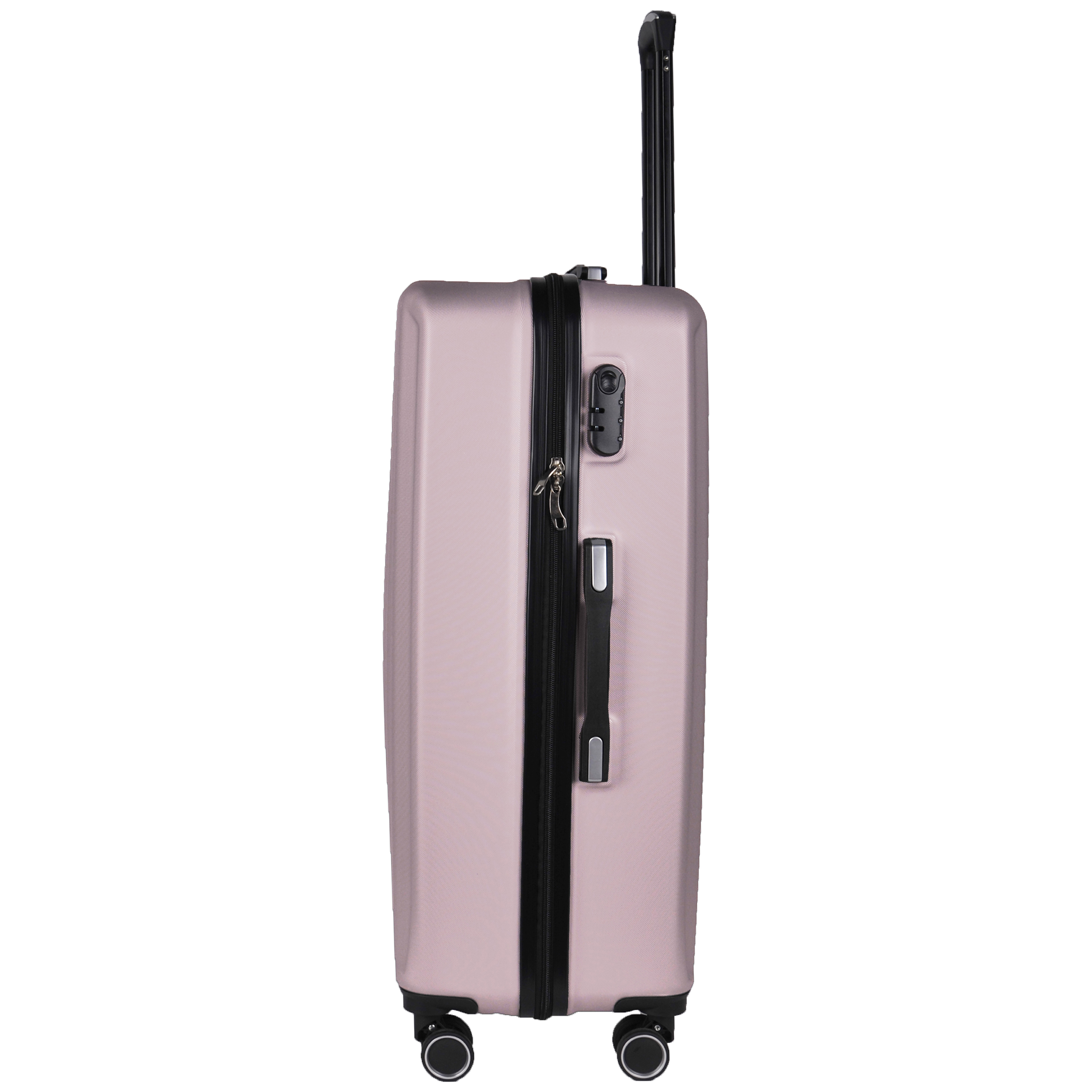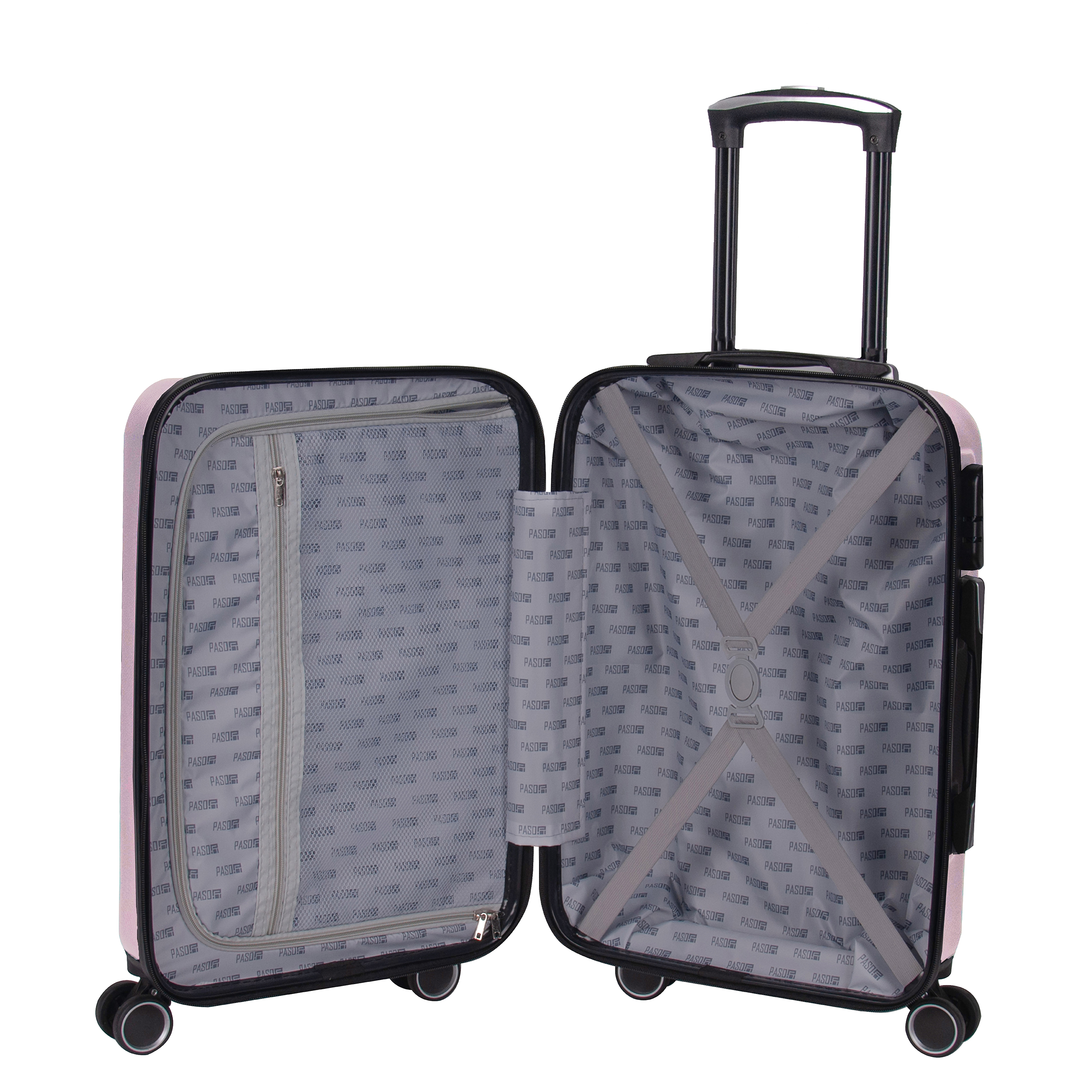 Lekka walizka na czterech kółkach obrotowych. Wykonana z twardego odpornego na zarysowania tworzywa ABS. Jedna część zamykana przegrodą z dodatkowymi kieszonkami, druga część zabezpieczana pasami spinającymi. Wygodna rączka, stelaż wewnętrzny, zamek szyfrowy. Dwa wygodne uchwyty do przenoszenia górny i boczny.