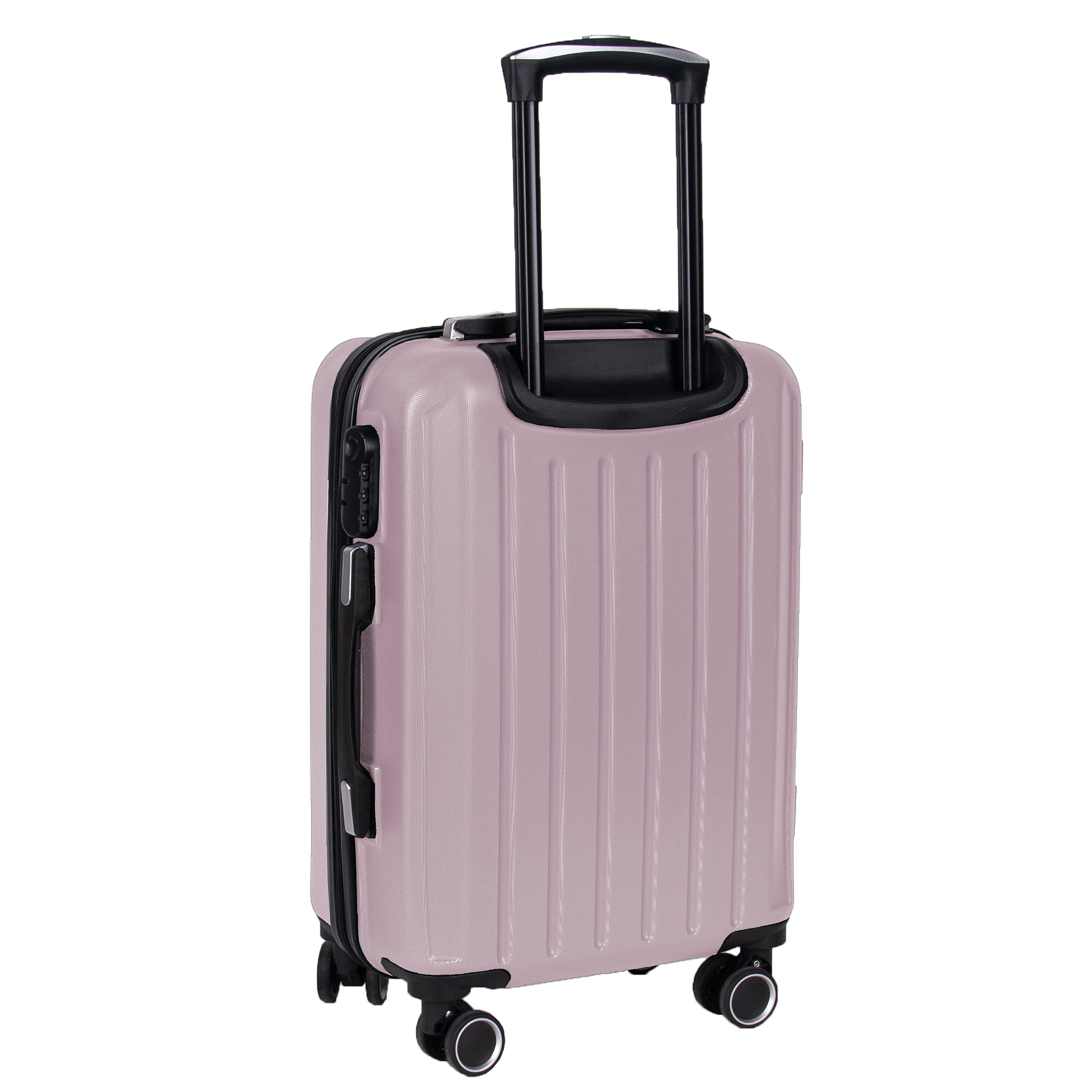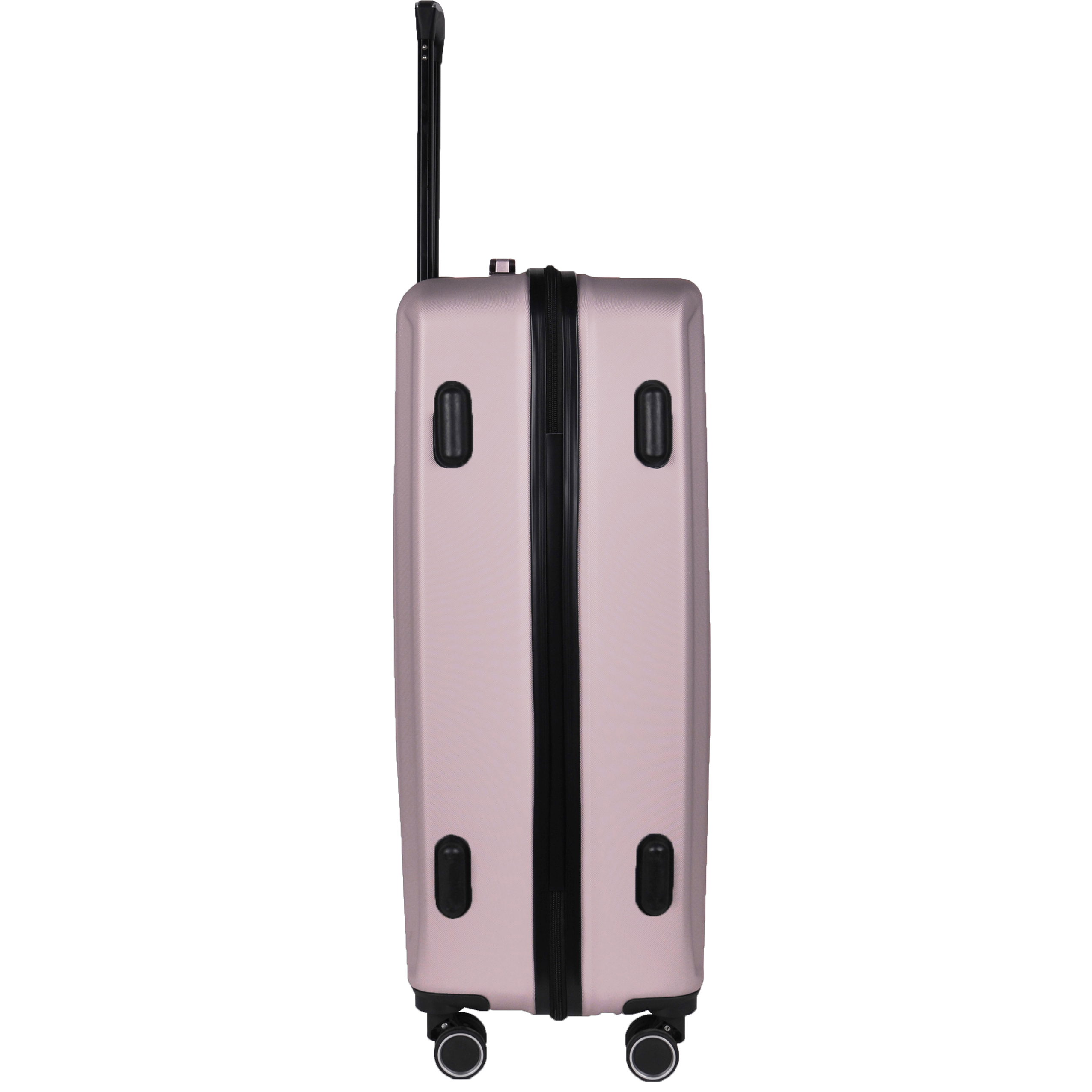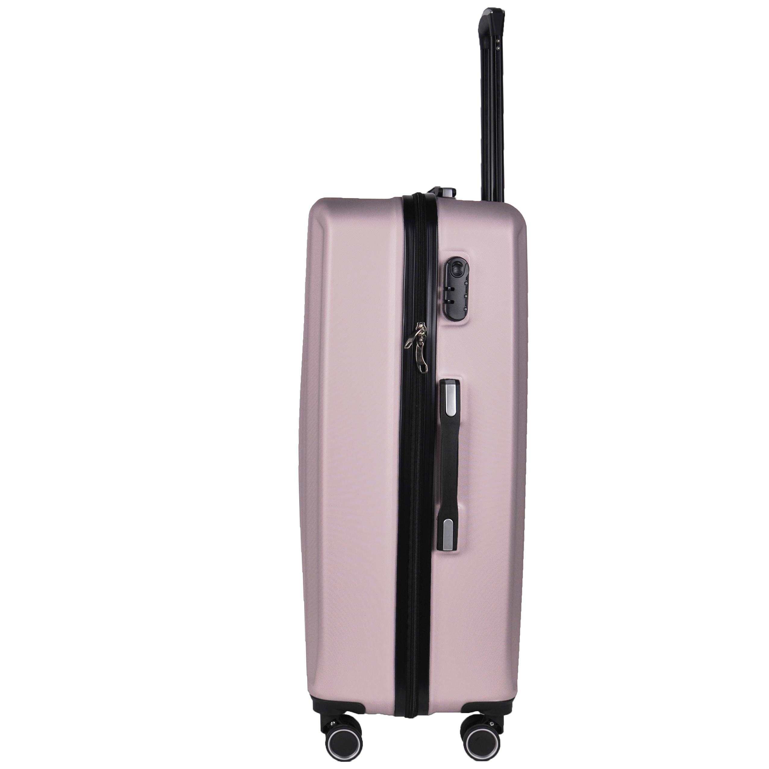 Lekka walizka na czterech kółkach obrotowych. Wykonana z twardego odpornego na zarysowania tworzywa ABS. Jedna część zamykana przegrodą z dodatkowymi kieszonkami, druga część zabezpieczana pasami spinającymi. Wygodna rączka, stelaż wewnętrzny, zamek szyfrowy. Dwa wygodne uchwyty do przenoszenia górny i boczny.